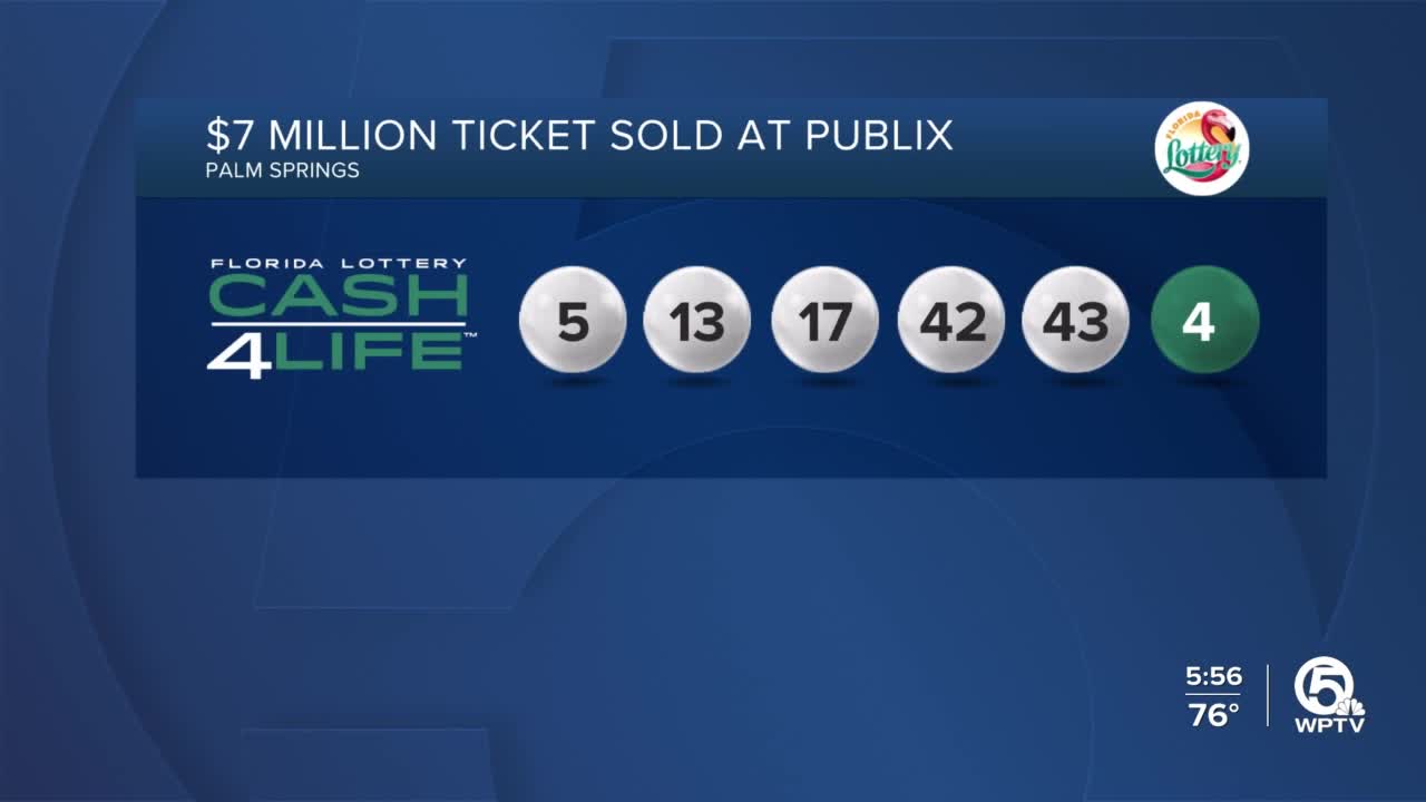 PALM SPRINGS, Fla. — A lottery ticket worth at least $7 million was sold recently at a Publix grocery store in Palm Beach County.