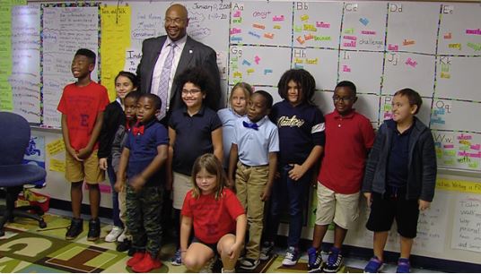 Superintendent Dr. Donald Fennoy read to second graders at Dwight D. Eisenhower Elementary School in Palm Beach Gardens.