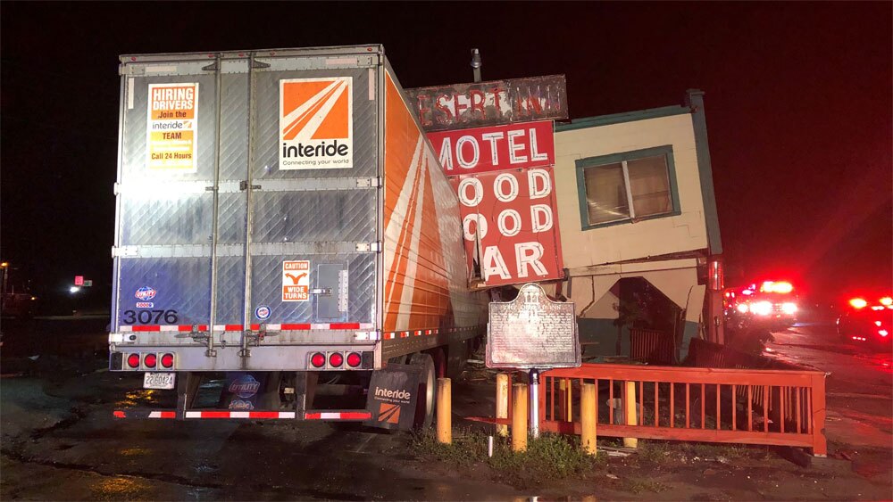 YEEHAW JUNCTION, Fla. — A semi truck crashed into the Desert Inn and Restaurant in Yeehaw Junction early Sunday morning, causing substantial damage to the historic site.
