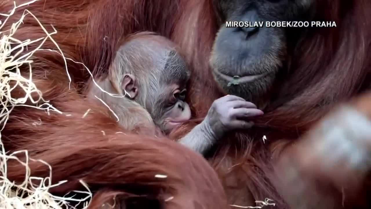 Prague Zoo is celebrating the birth of a baby orangutan.