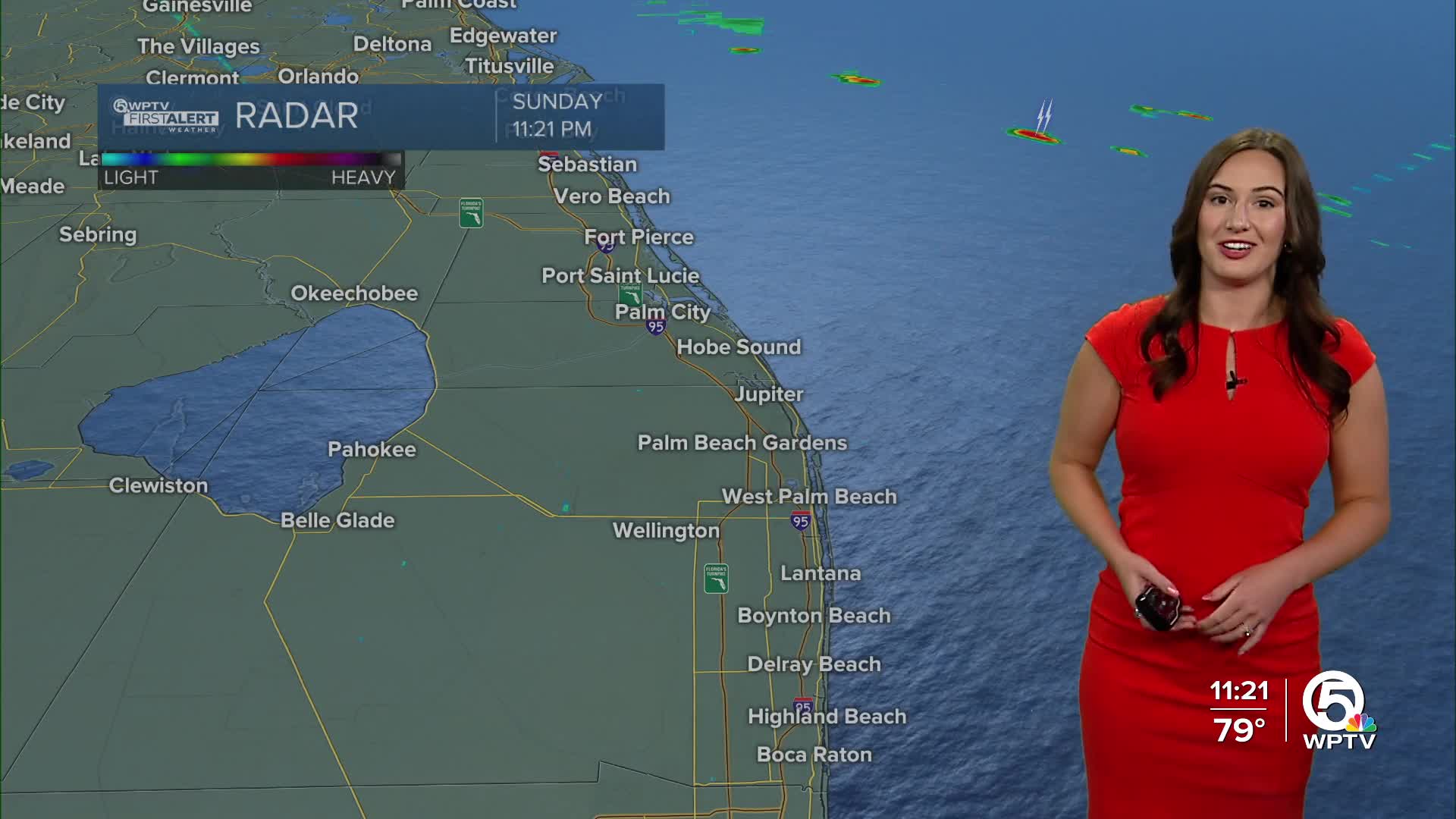 WEST PALM BEACH, Fla. — It will be partly-mostly cloudy overnight with the chance for isolated showers, especially near the coast. Lows will fall into the mid-upper 70s.