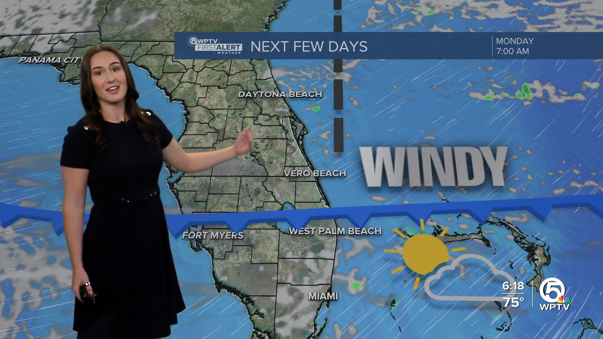 A strong area of high pressure building over the eastern U.S. will tighten the pressure gradient across South Florida late tonight into Monday. That means gusty northeast winds developing along the coast and offshore. With the on-shore winds, a brief, coastal shower can't be ruled out.