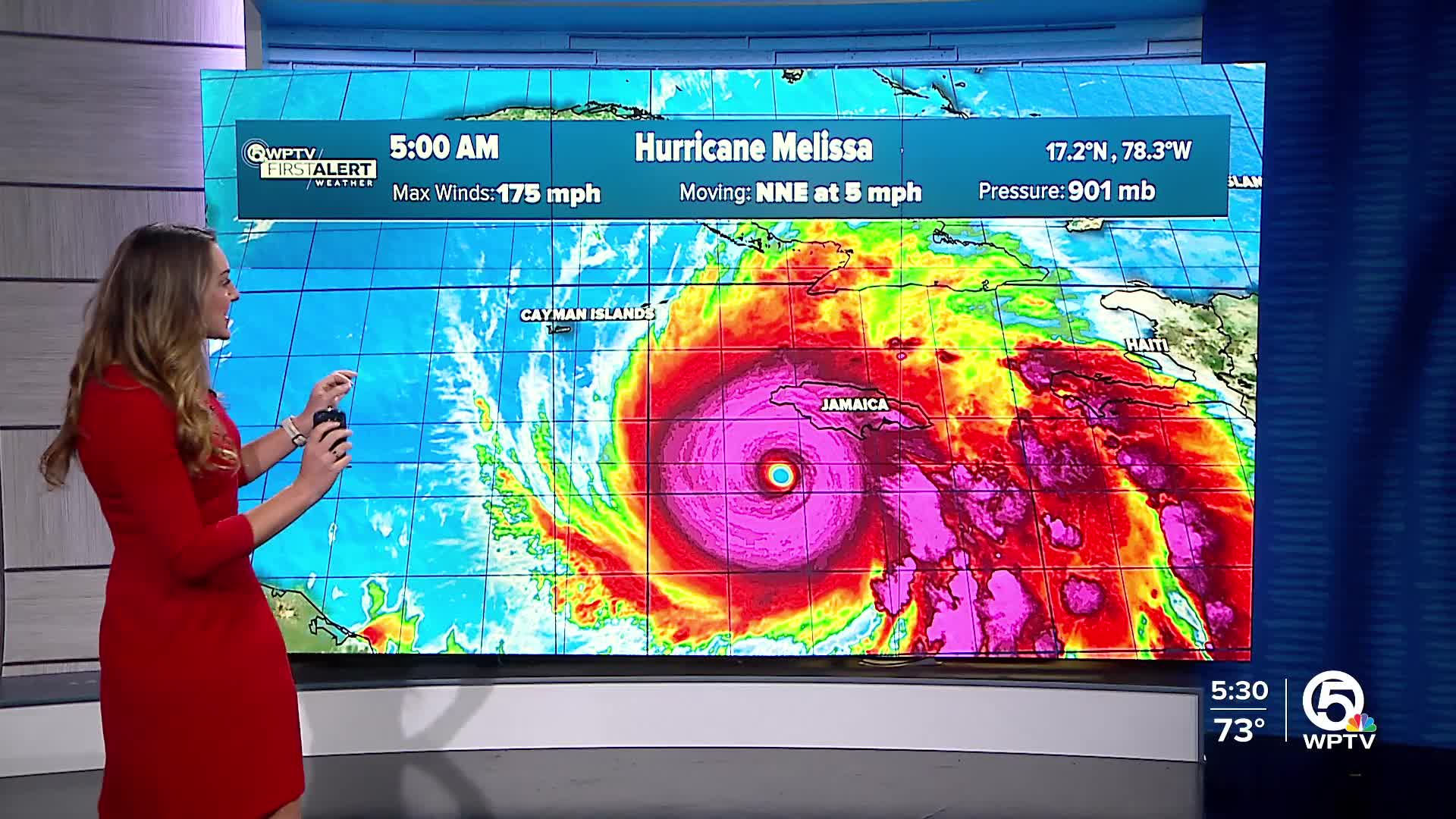 WEST PALM BEACH, Fla. — Hurricane Melissa is expected to make landfall over Jamaica today as a Category 5 storm, already bringing catastrophic winds, flash flooding, and storm surge.