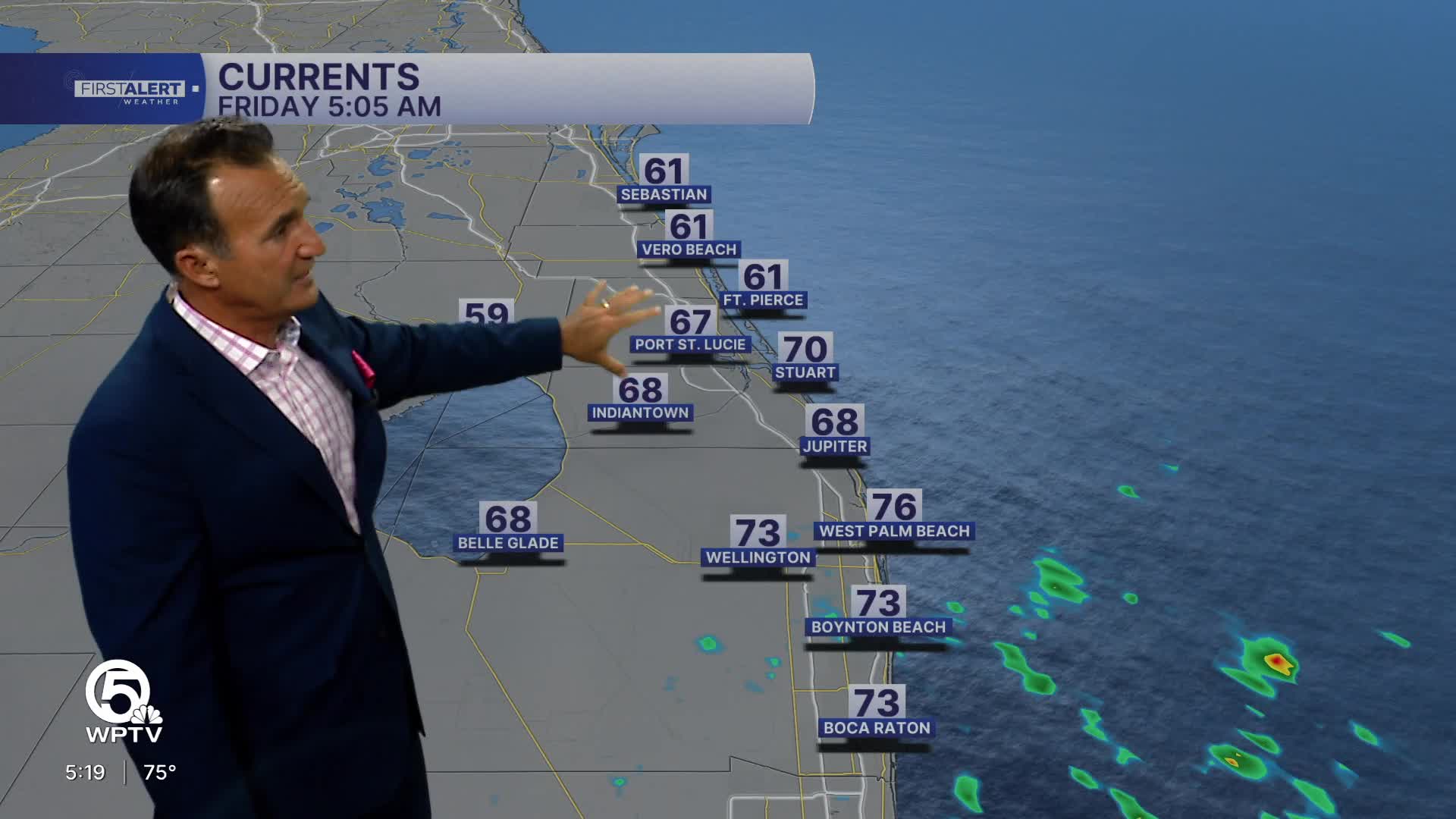WEST PALM BEACH, Fla. — Some passing showers are moving across the coastline this morning, starting in the Palm Beaches and making its way up towards the Treasure Coast. Expect this moisture to last for a few hours.