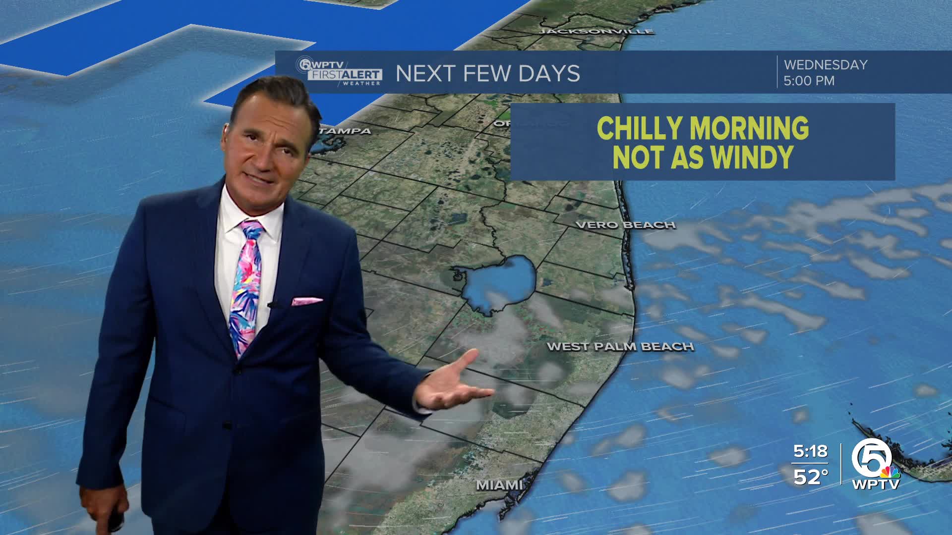 WEST PALM BEACH, Fla. — Temperatures are gradually returning to normal after yesterday's cold snap! Today will feel nicer, with partly sunny skies and highs in the mid-70s.