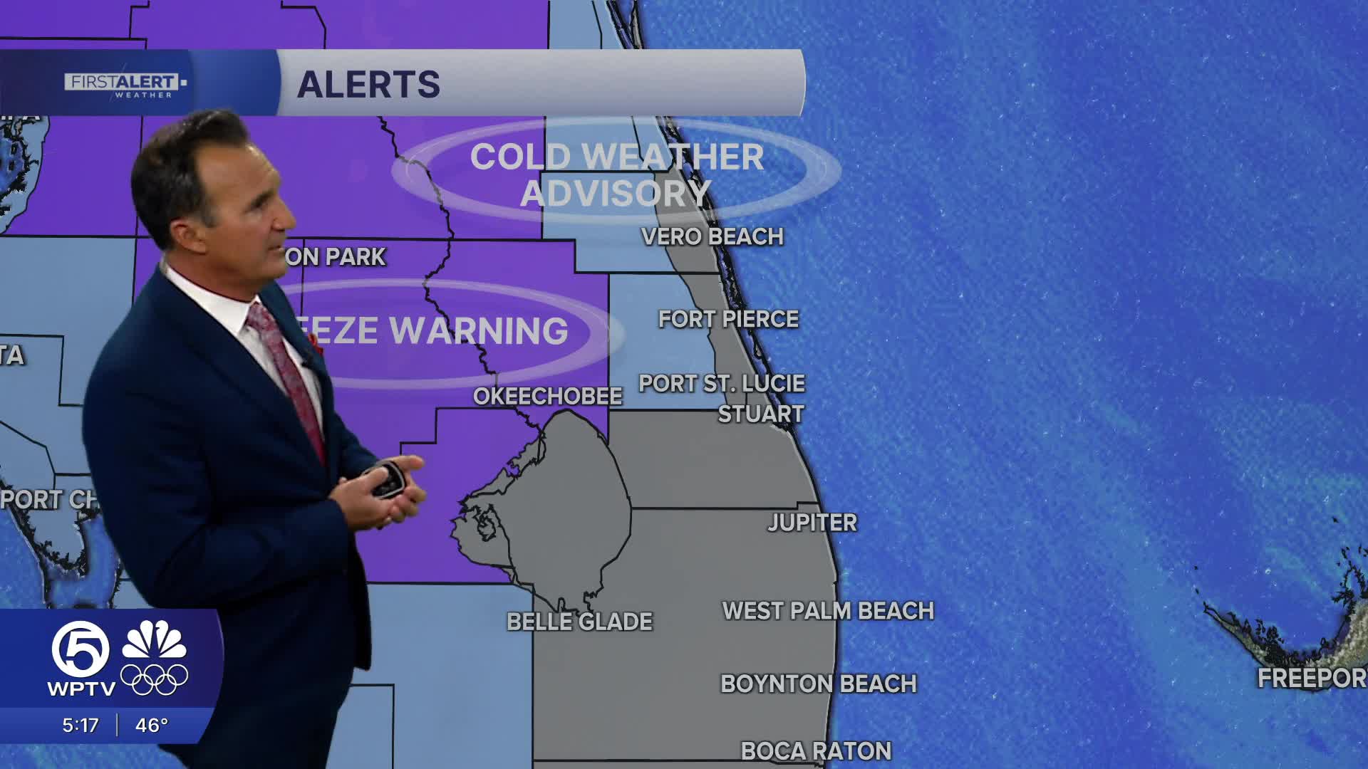 A Cold Weather Advisory is in effect for Okeechobee County and inland Indian River and St. Lucie counties until 9 a.m.