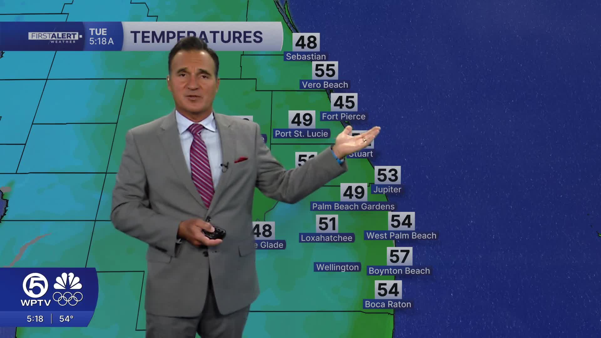 WEST PALM BEACH, Fla. — South Florida is settling into a stretch of calm, comfortable weather, with mostly clear skies and mild temperatures expected to persist through the week.