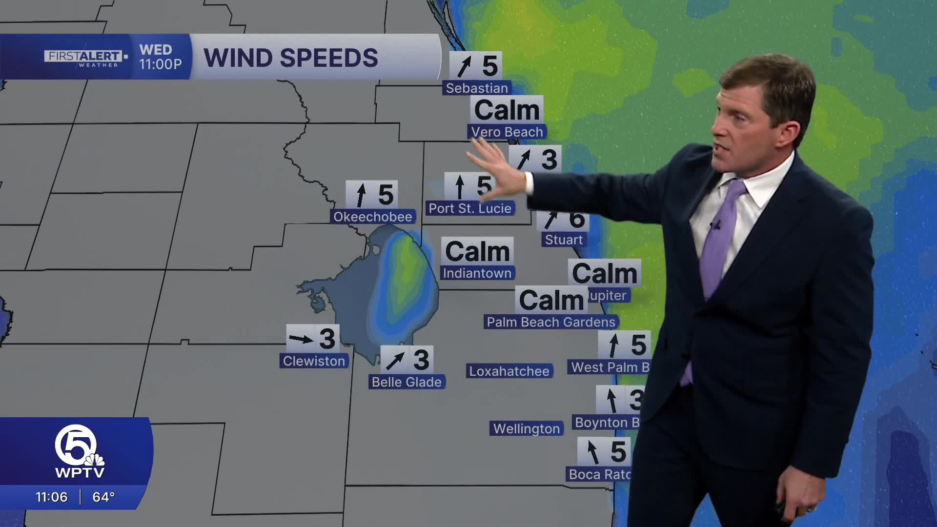 WEST PALM BEACH, Fla. — We have one last night on the chillier side (mid 50s for Palm Beaches, upper 40s for the Treasure Coast and inland) as even warmer air settles in on Thursday.