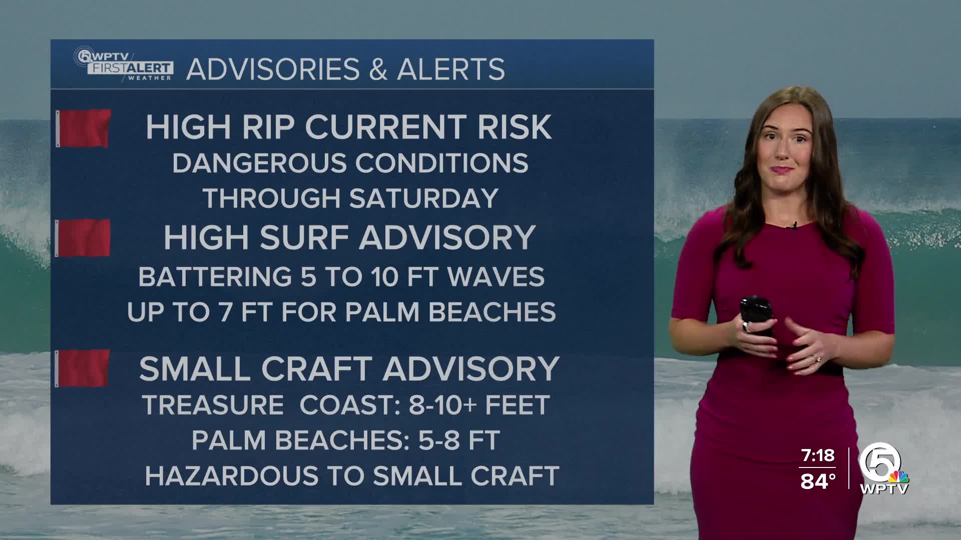 A High Surf Advisory and Small Craft Advisory is in effect for the Treasure Coast and Palm Beaches.