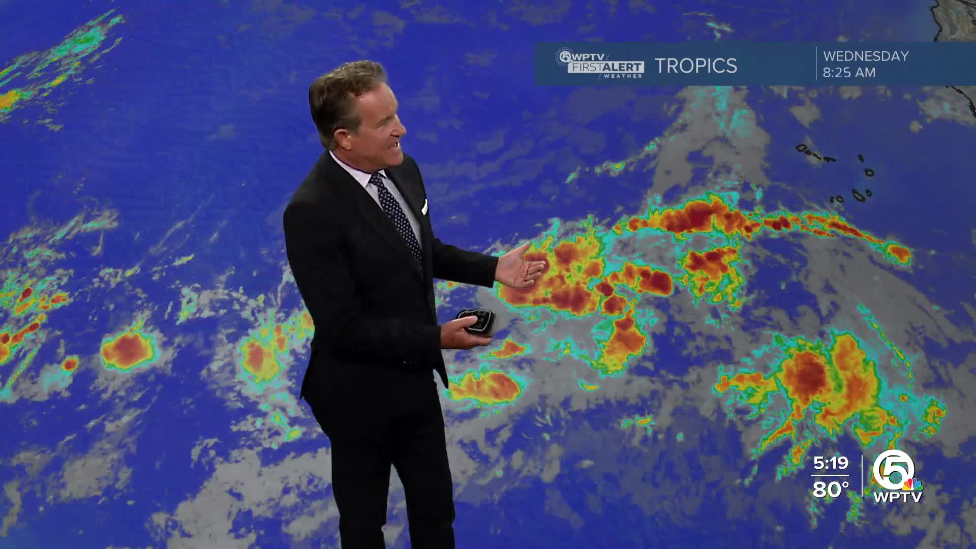WEST PALM BEACH, Fla. — Moisture levels have once again cranked up for mid and late week with a stationary front over South Florida.