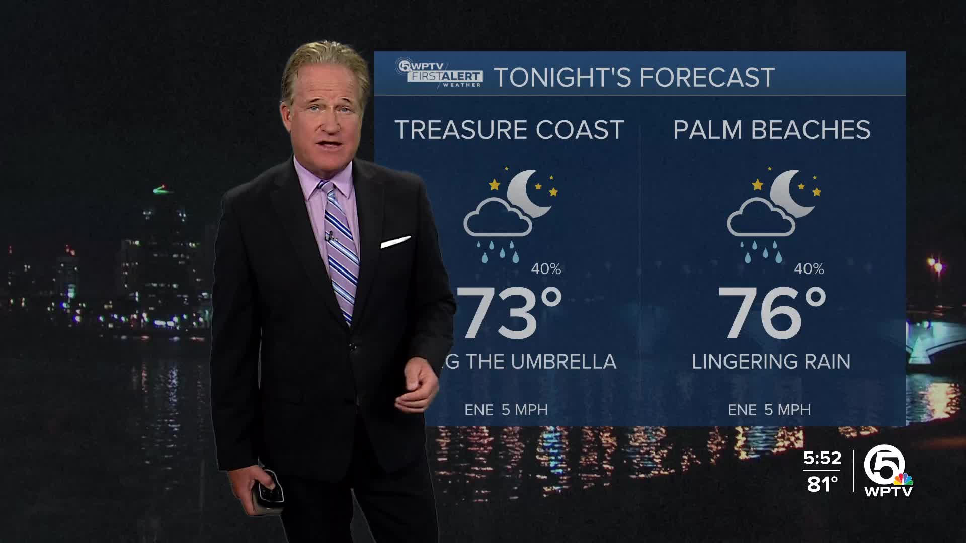 Rain and storm chances stay elevated on Friday, especially along the East Coast. While some drier air may try to push in from the Atlantic this weekend, typical afternoon sea breeze storms remain likely both Saturday and Sunday.