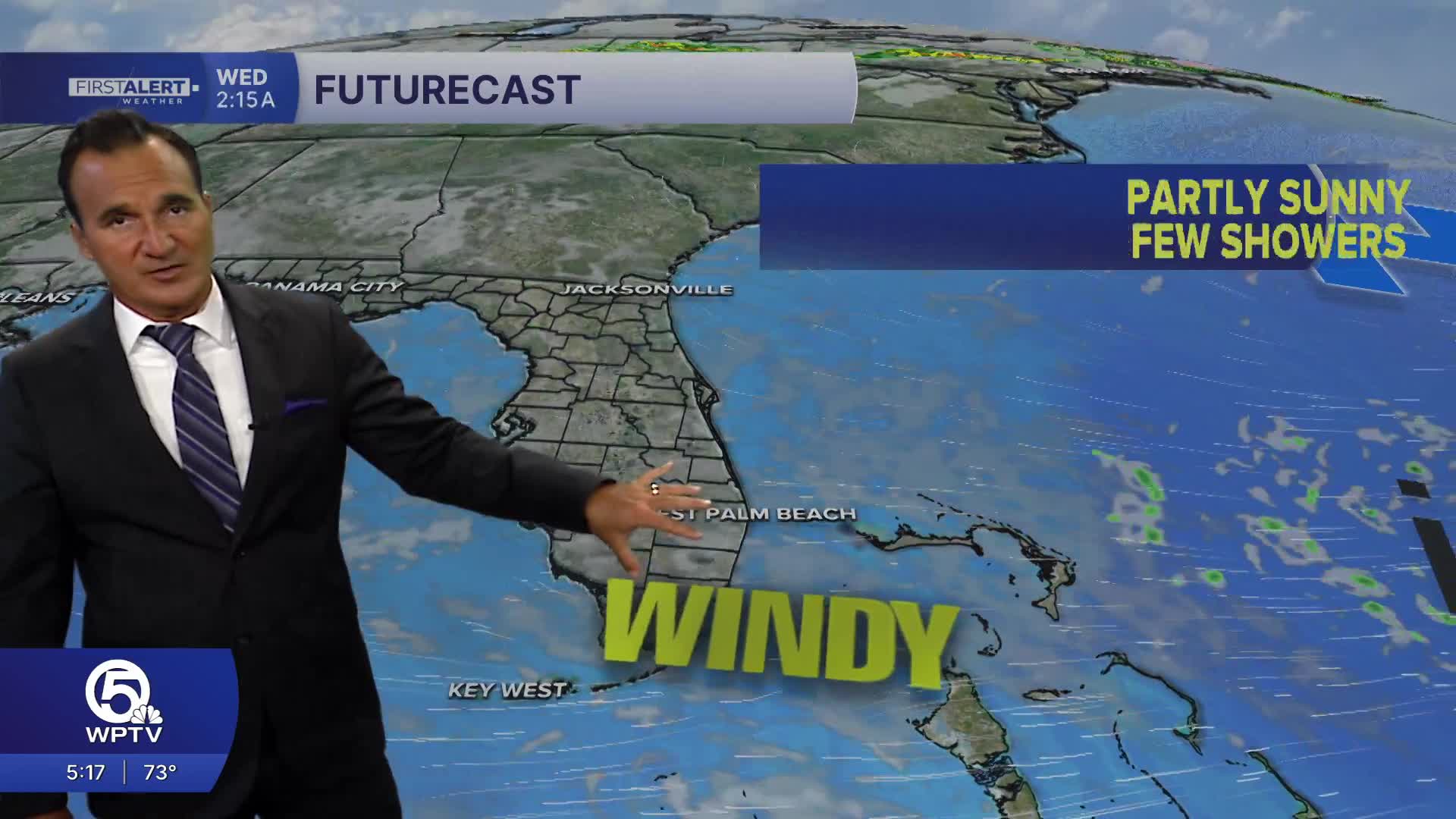 By Wednesday, things trend even drier as the high-pressure system shifts slightly east and continues to feed in less humid air from the northeast. The breezy conditions stick around, and a few isolated showers are possible. Temperatures will show a split across the region: coastal areas stay a bit cooler in the upper 70s to low 80s thanks to the ocean breeze, while inland and western spots warm into the mid-80s.