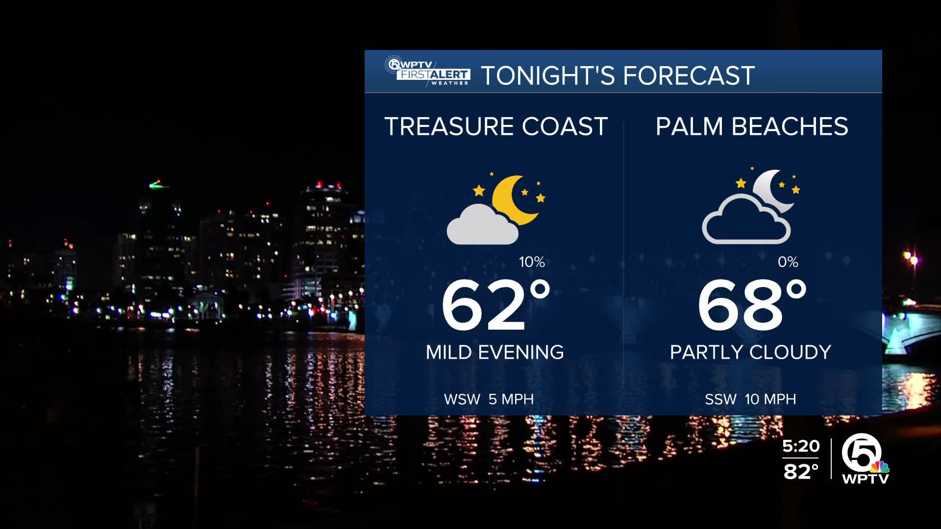 A nice cool-down is expected behind the front. Highs fall into the upper 70s, and mornings get noticeably cooler: low 50s west of Lake Okeechobee, 60s elsewhere.