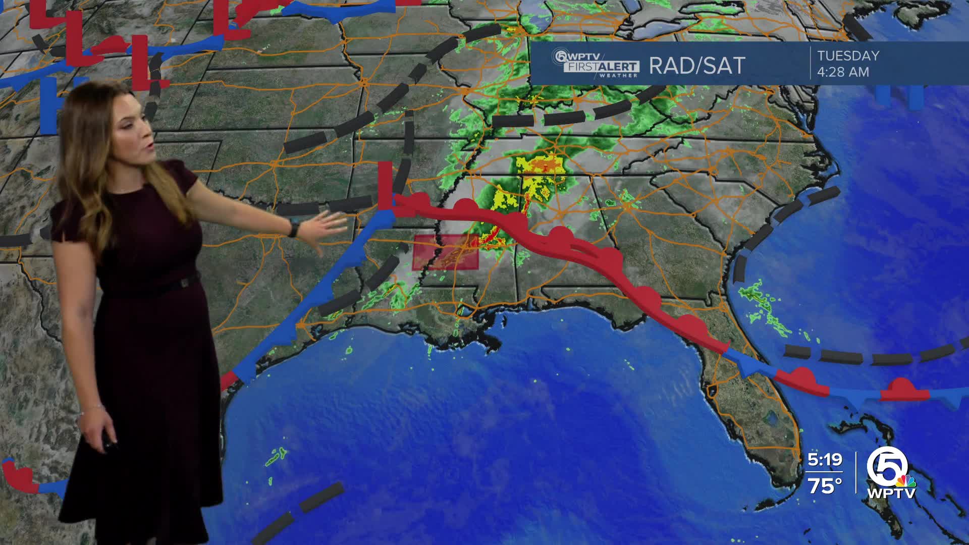 It will feel more humid by Wednesday afternoon as the cold front moves over North Florida. Stray showers or storms are possible on Wednesday night. The cold front passes through the Treasure Coast and the Palm Beaches on Thanksgiving Day with lots of clouds and minimal moisture.
