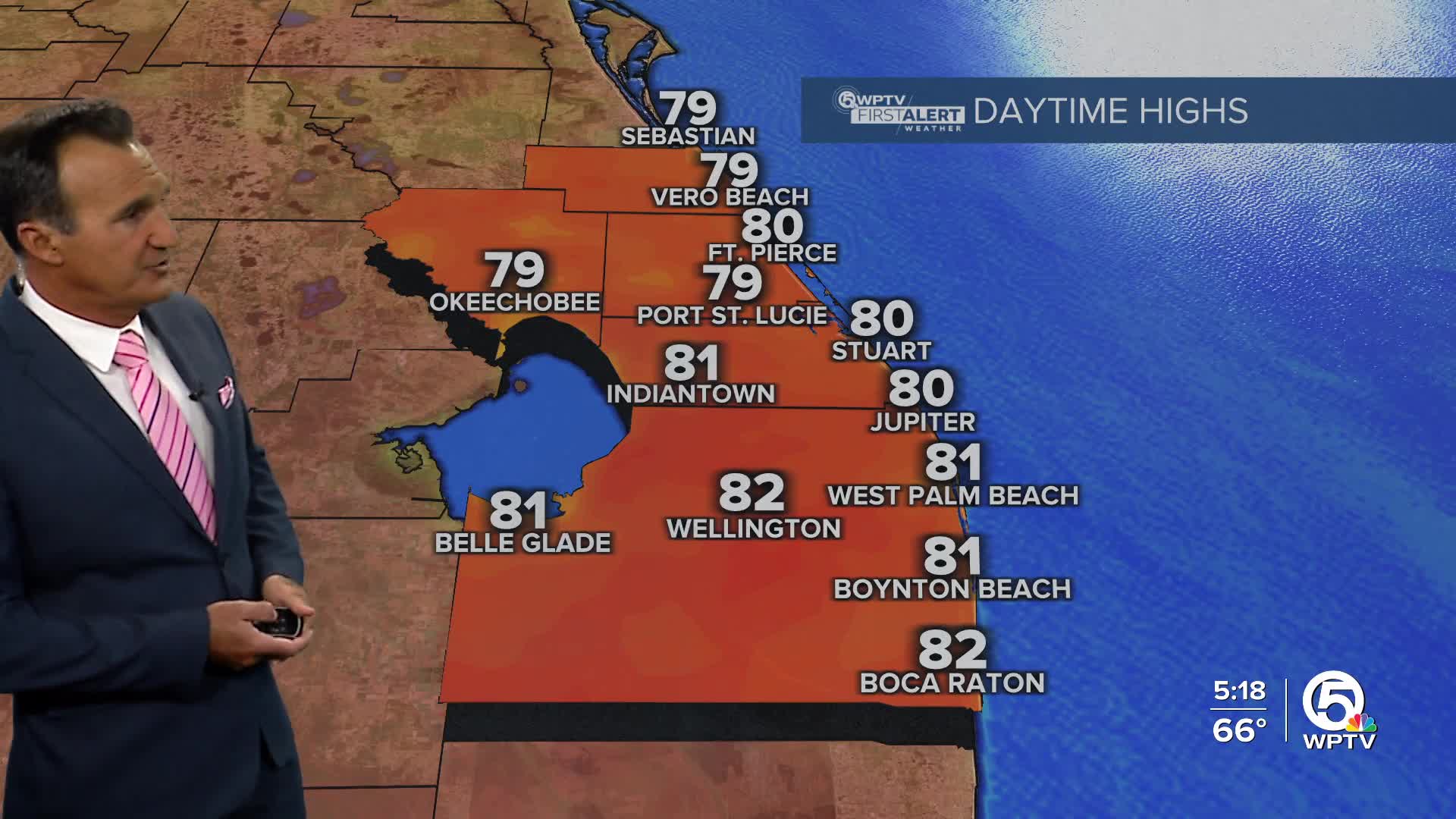 WEST PALM BEACH, Fla. — It's a lovely start to the day with dry air and cooler temperatures this morning, thanks to yesterday's cold front.