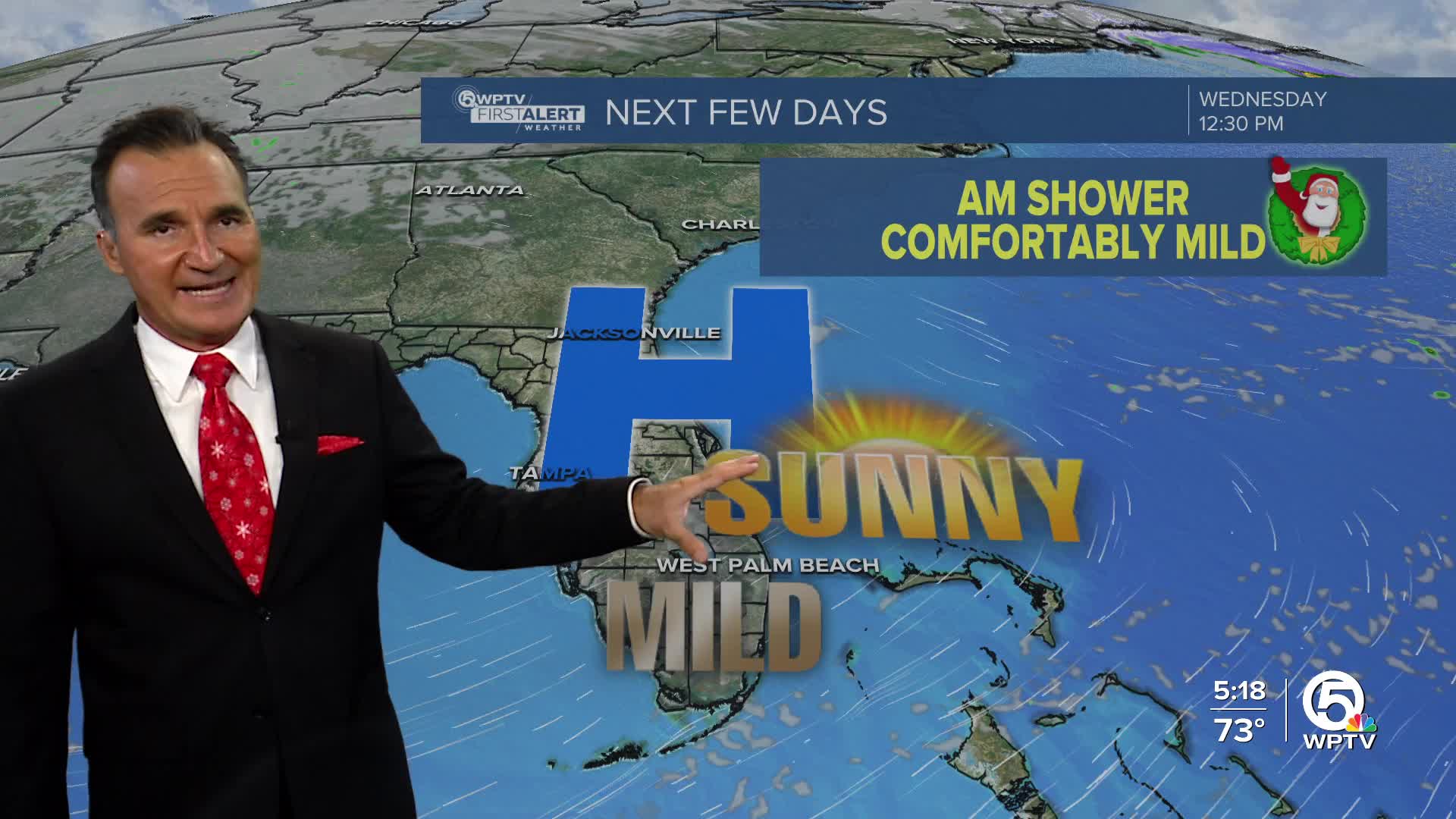 High temperatures are in the upper 70s, and lows will be around 61 degrees on the Treasure Coast and 67 on the Palm Beaches.
