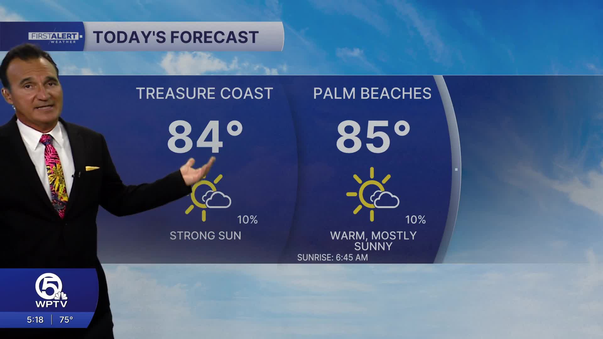 One important note for beachgoers— a high risk of rip currents is developing along the Palm Beaches due to a northeast swell, so ocean conditions could be dangerous despite the otherwise calm weather.