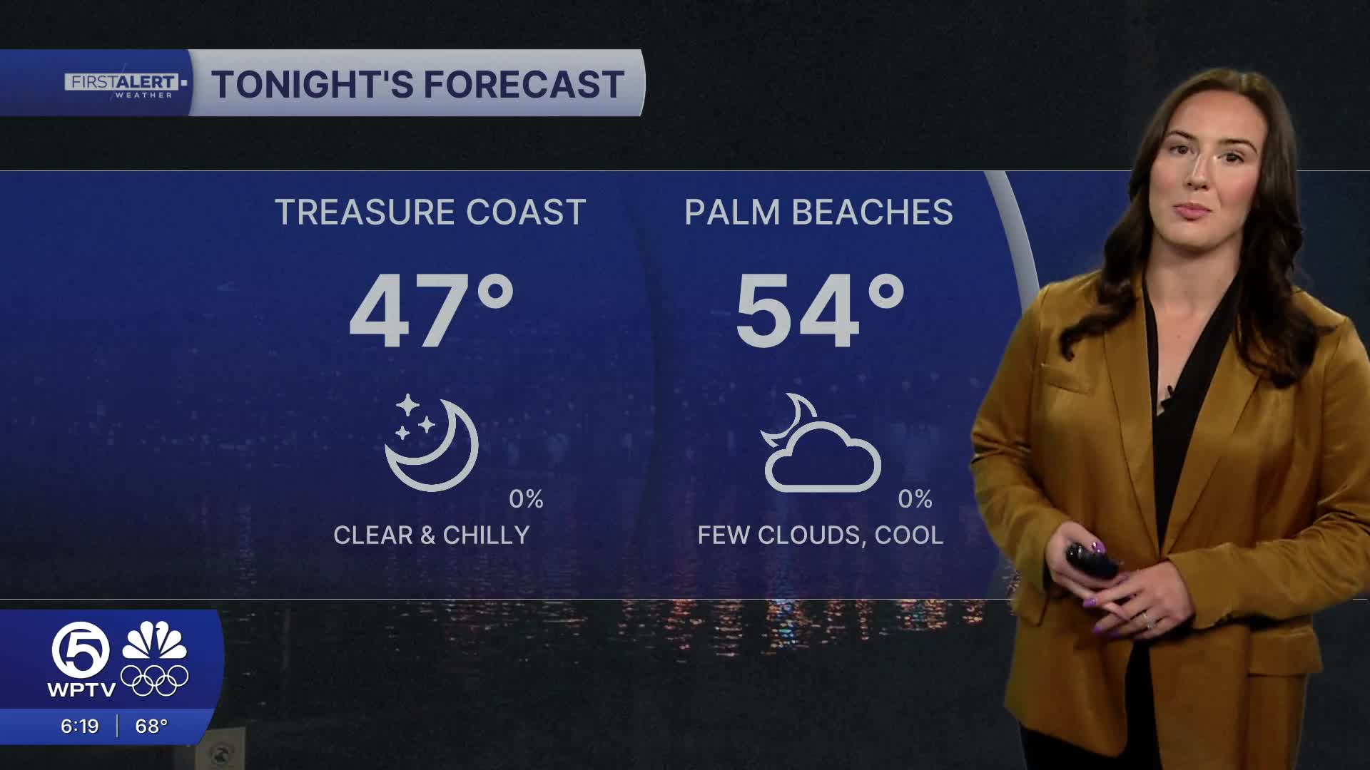 The nights will still be on the chillier side with lows in the mid 40s inland and in the Treasure Coast to mid 50s for the Palm Beaches. However, during the day, temperatures will rebound into the mid-upper 70s and even the lower 80s later in the week.