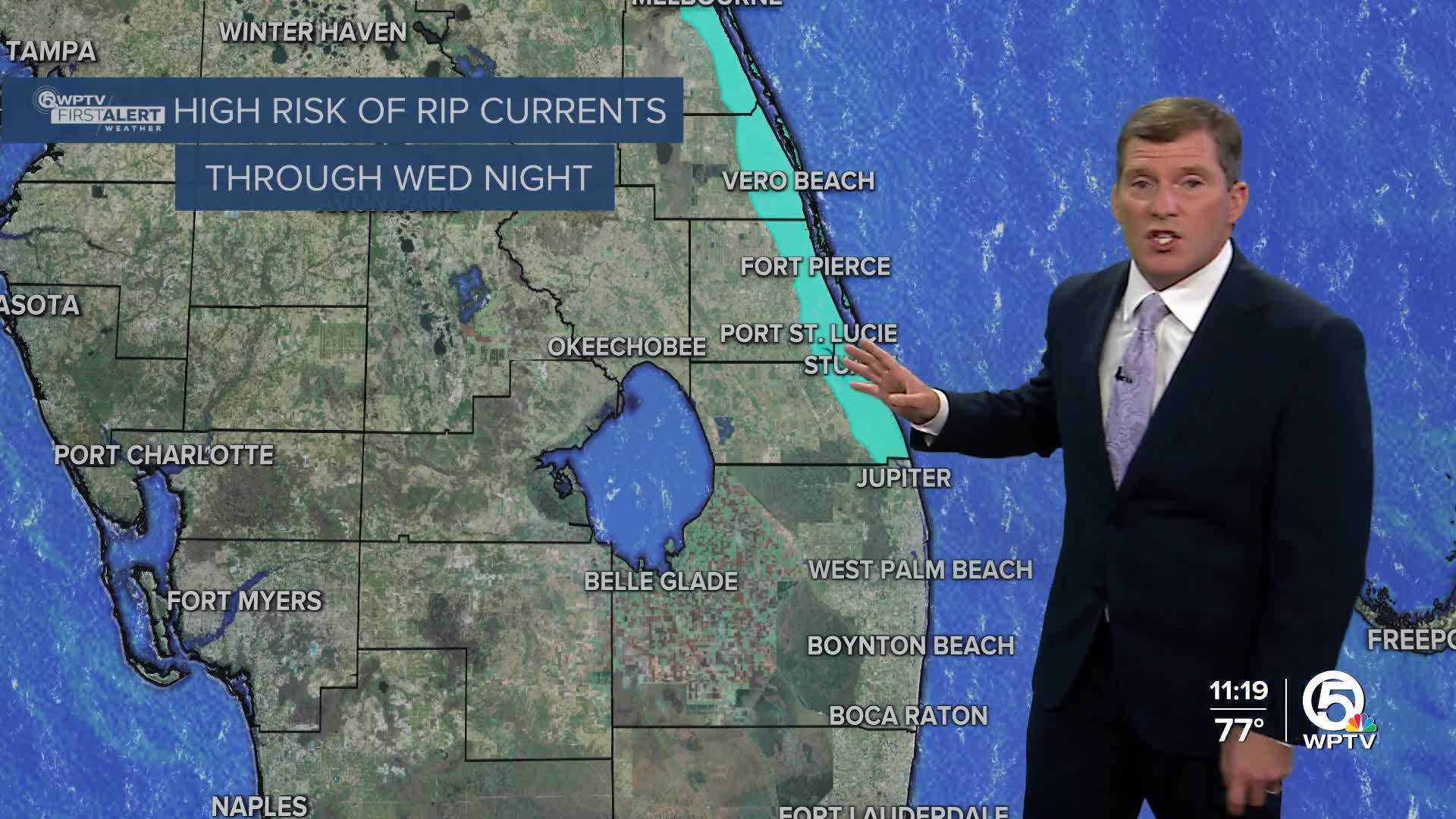 The water could be a little rough at times with 2-3 foot waves. There's also a high risk of rip currents. Please make sure you're only swimming on guarded beaches. Otherwise, expect lots of sunshine during the first part of the day with a pop up thunderstorm by afternoon. Light northeasterly winds of 5-10 mph.