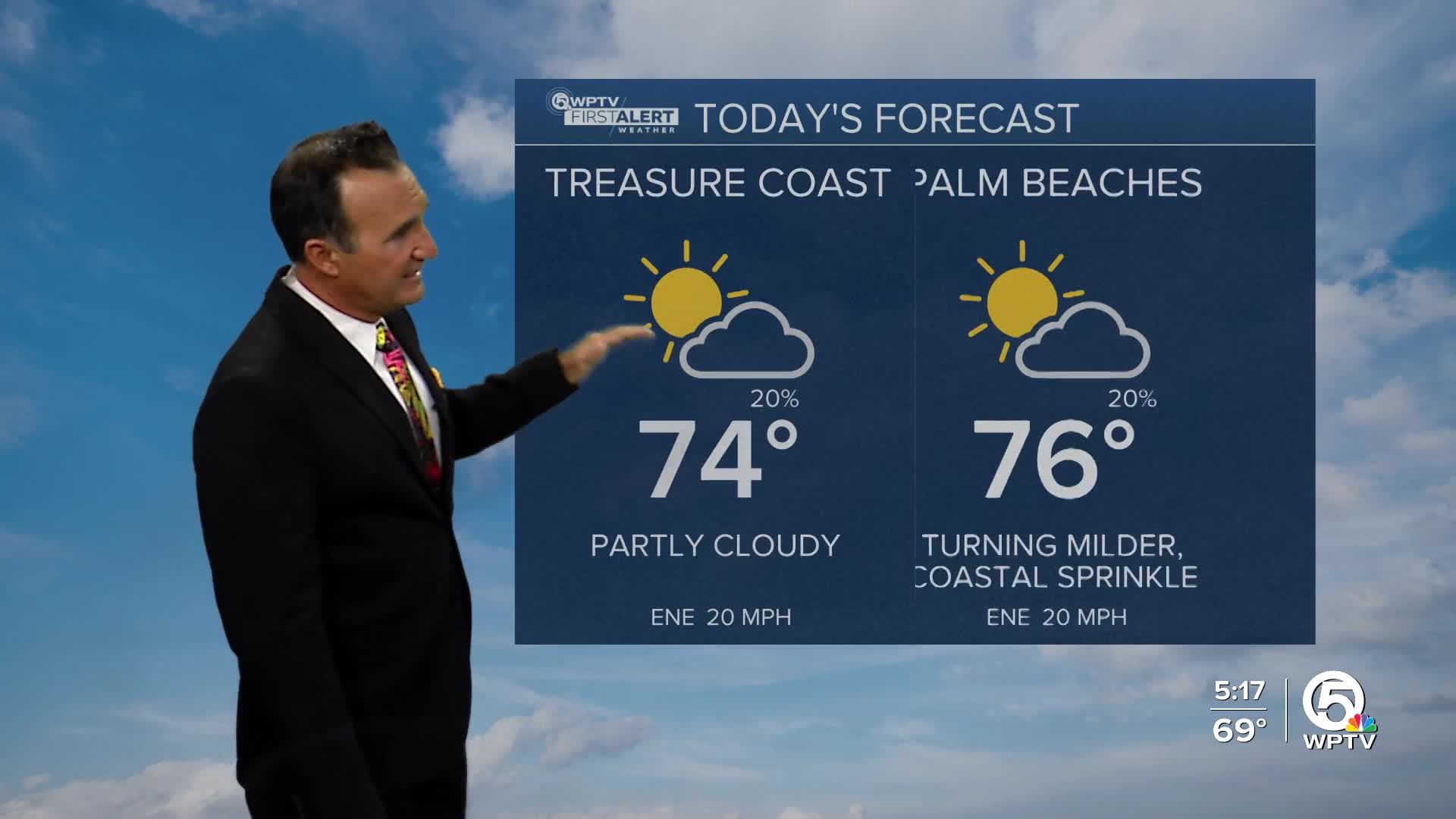 WEST PALM BEACH, Fla. — It'll be a breezy day with some cloud coverage, but a nice day to spend outdoors. Thicker clouds are expected near the coast.