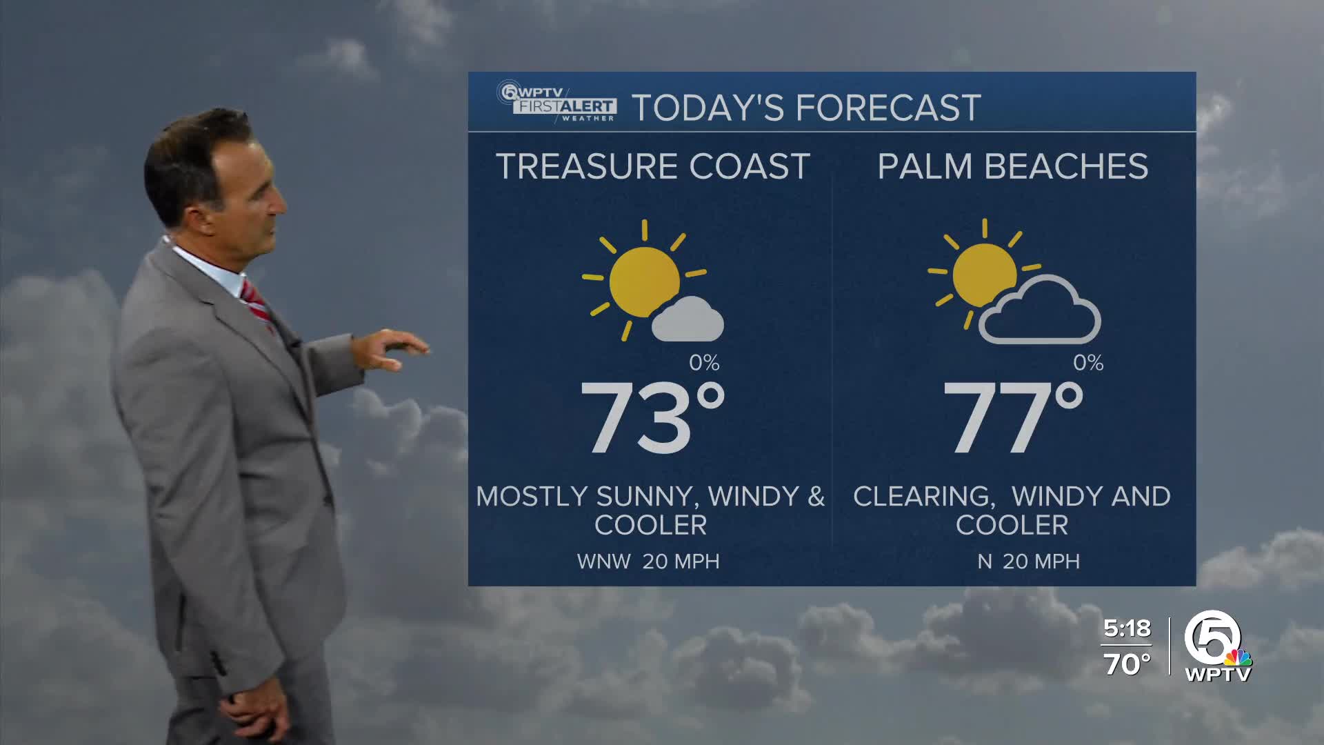 WEST PALM BEACH, Fla. — Today marks the start of a cool shift in South Florida as the first cold front of the fall and winter seasons pushes through.