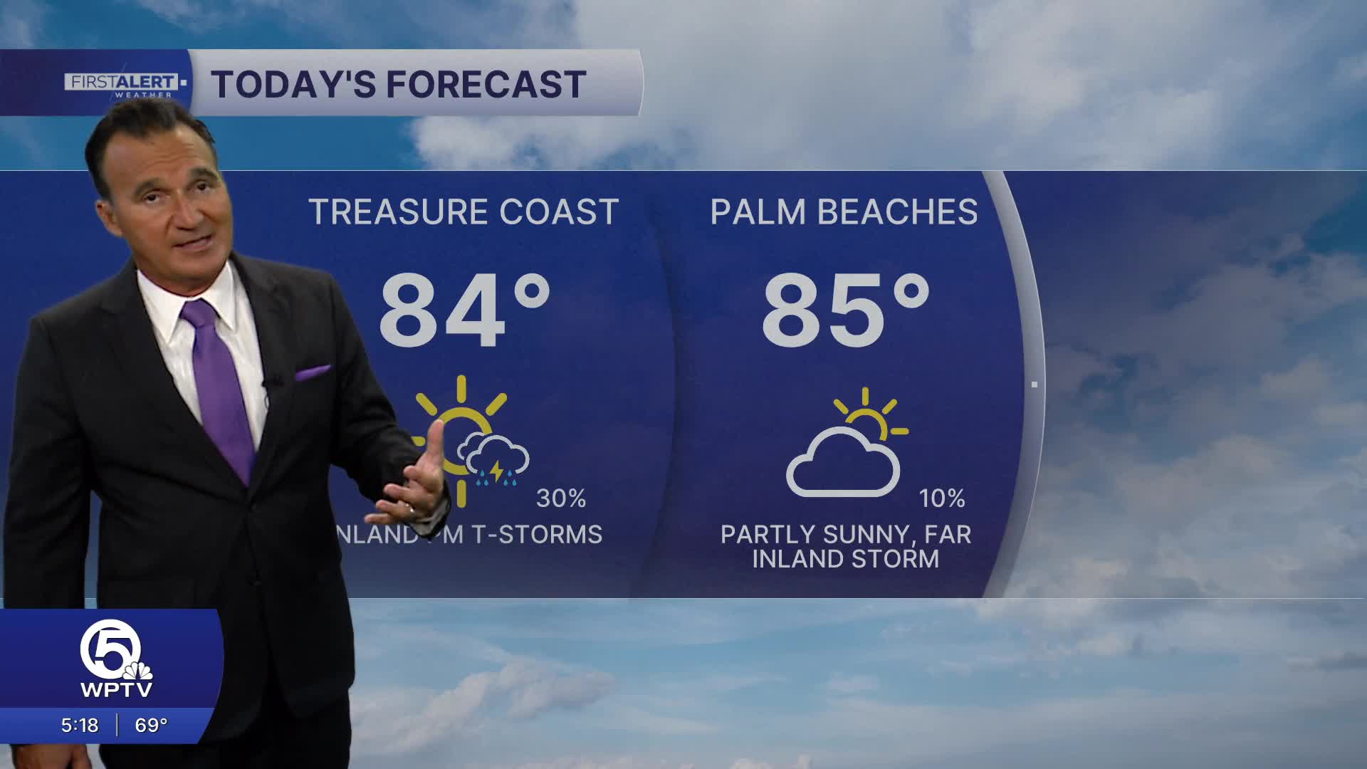Storm chances will be enhanced some today around the lake and inland areas of the Treasure Coast this afternoon.