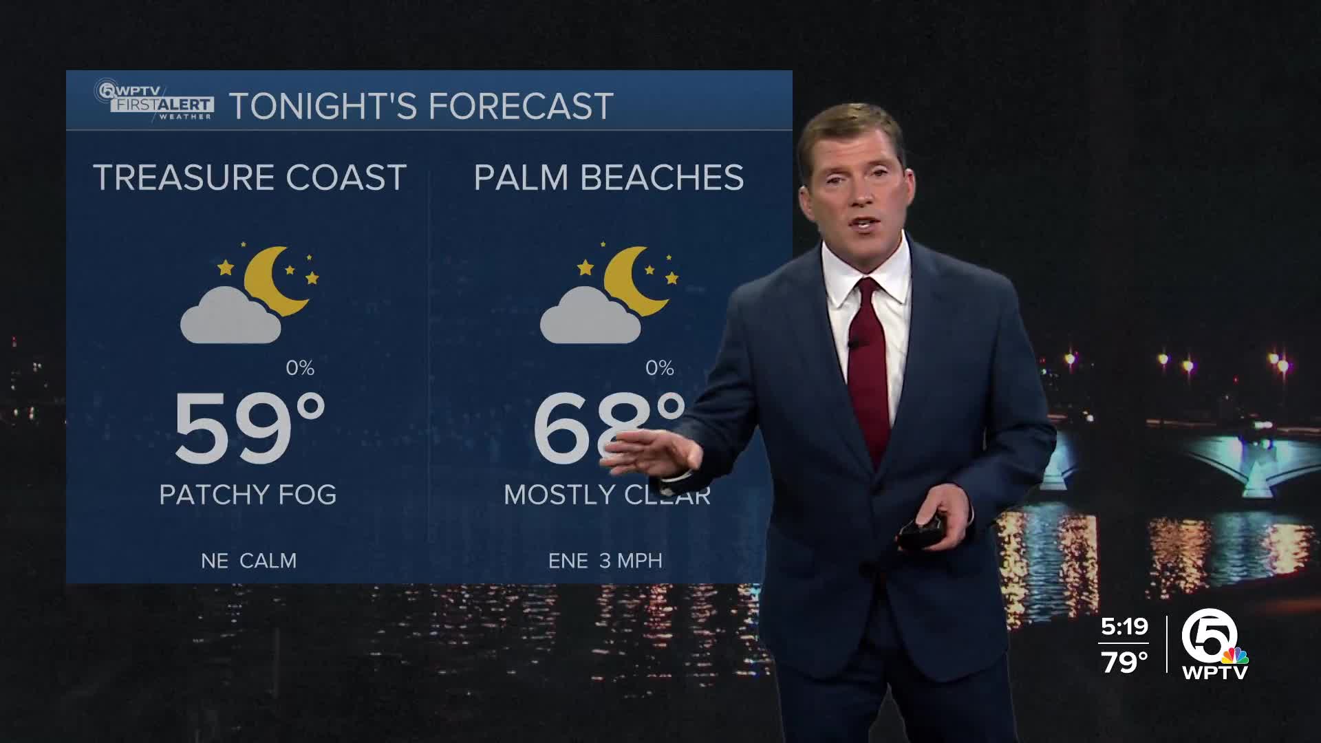 WEST PALM BEACH, Fla. — If you’re an early riser, expect some patchy morning fog over the next few days—possibly dense in a few spots. Once it burns off at about 8-9 a.m., we're in for a stretch of warm, mostly dry weather that lasts well into next week.