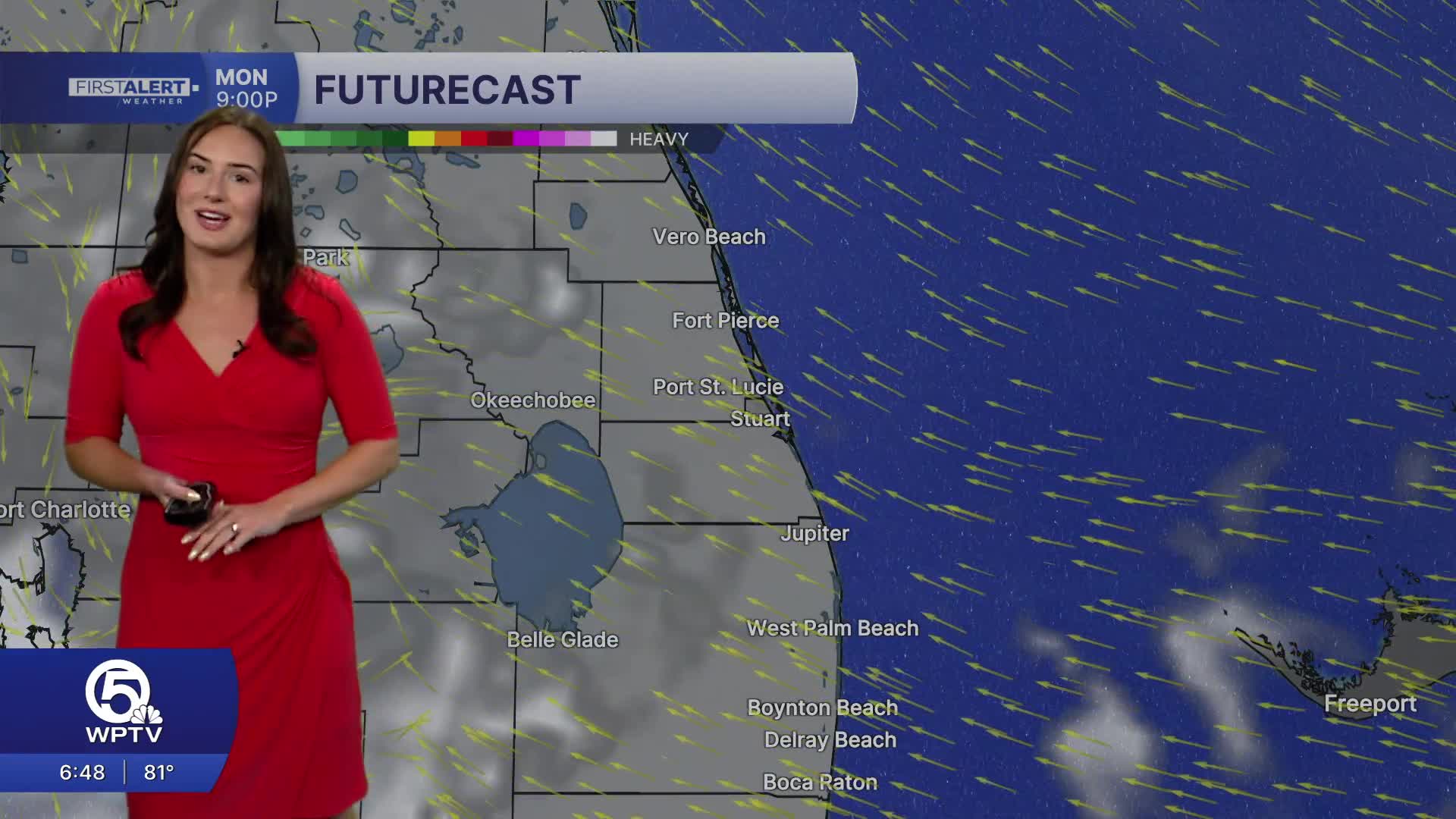WEST PALM BEACH, Fla. — It will stay mildly warm overnight as lows are expected to be in the mid 60s inland and around 70 for the coast.