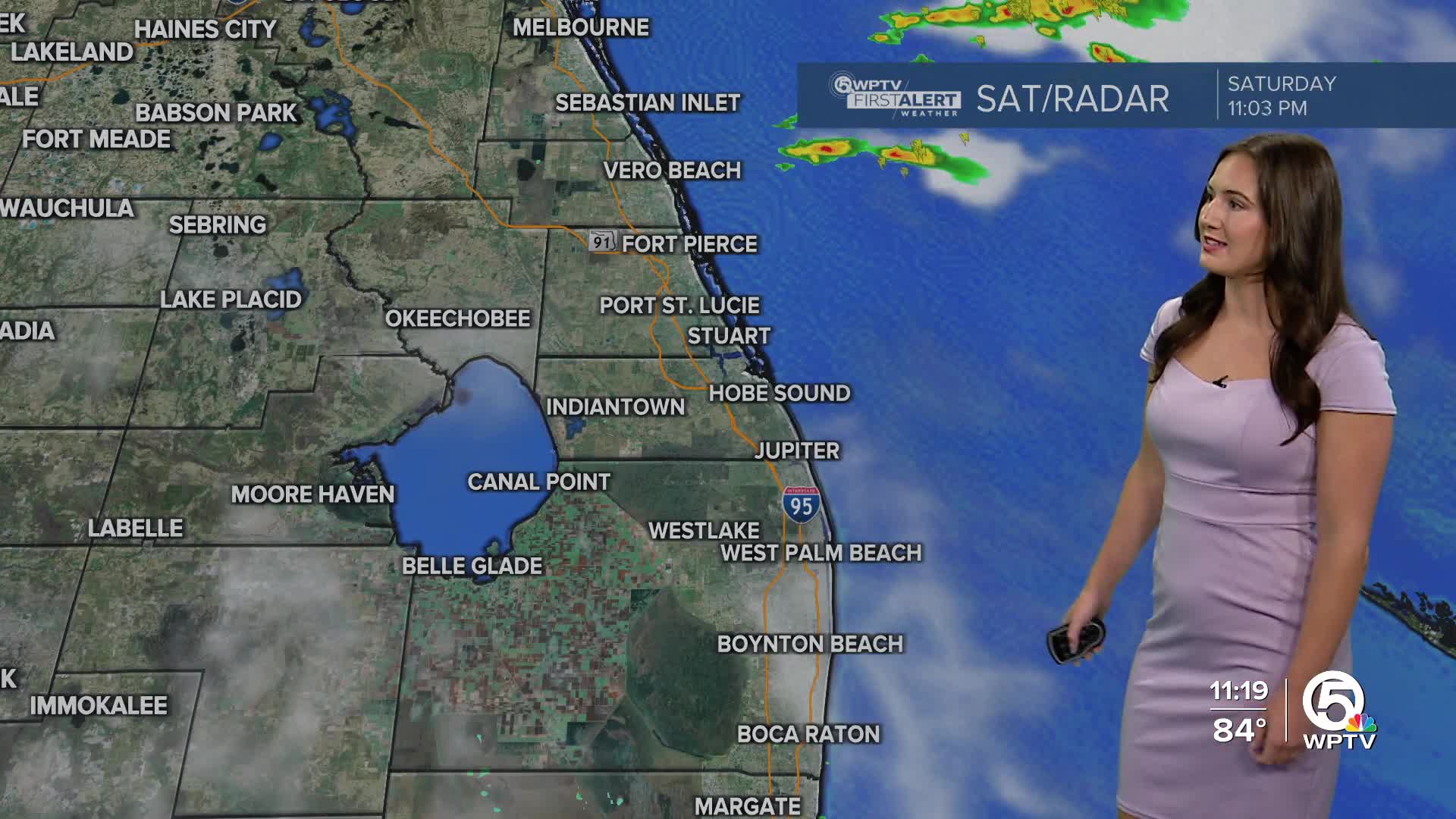 WEST PALM BEACH, Fla. — Sunday will feature more clouds than sun along with scattered downpours and thunderstorms popping up in the afternoon and evening. Isolated areas of flooding possible. Highs will approach the lower 90s.