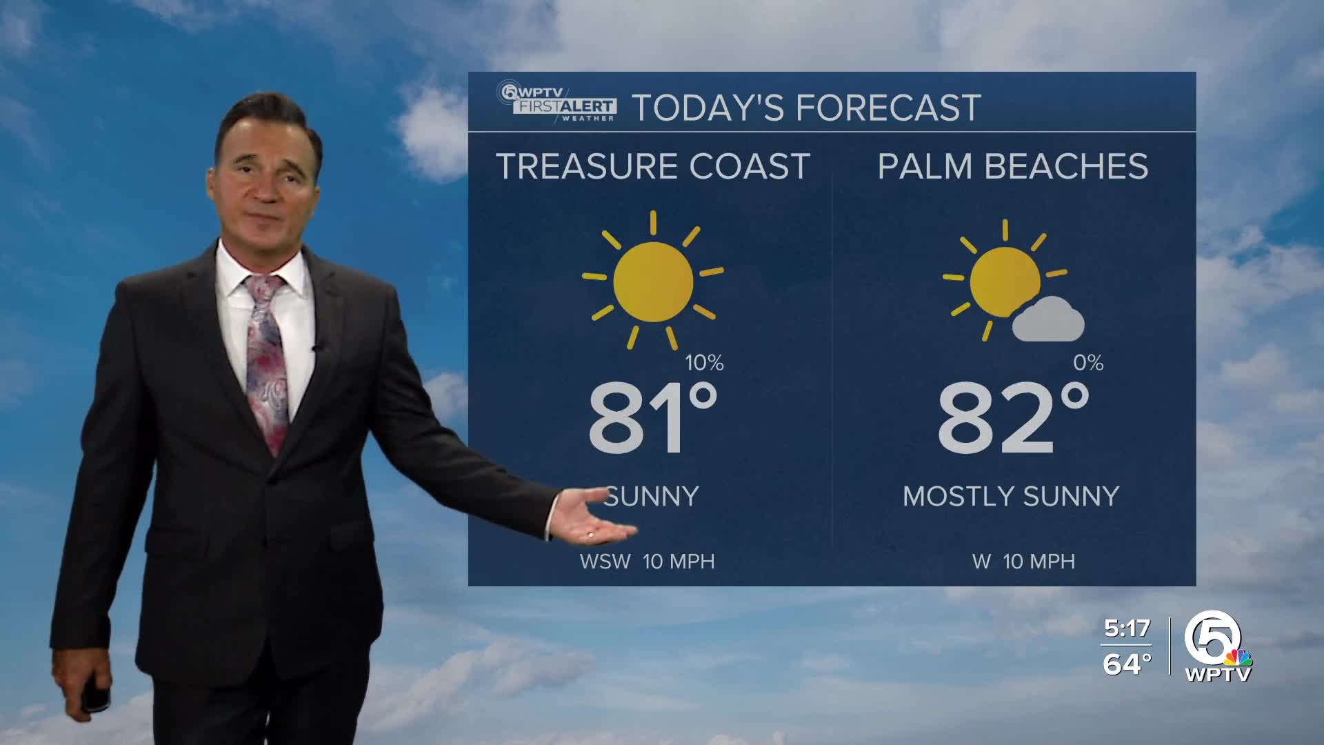 The cold front moves through on Tuesday, bringing a noticeable change. Winds will shift to the north and become breezy at times, ushering in a much cooler and drier air mass. Afternoon temperatures will be 5-10 degrees cooler than last week, with highs in the low 70s along the coast and in the mid-60s near Lake Okeechobee. Any rain chances should remain offshore over the Atlantic.