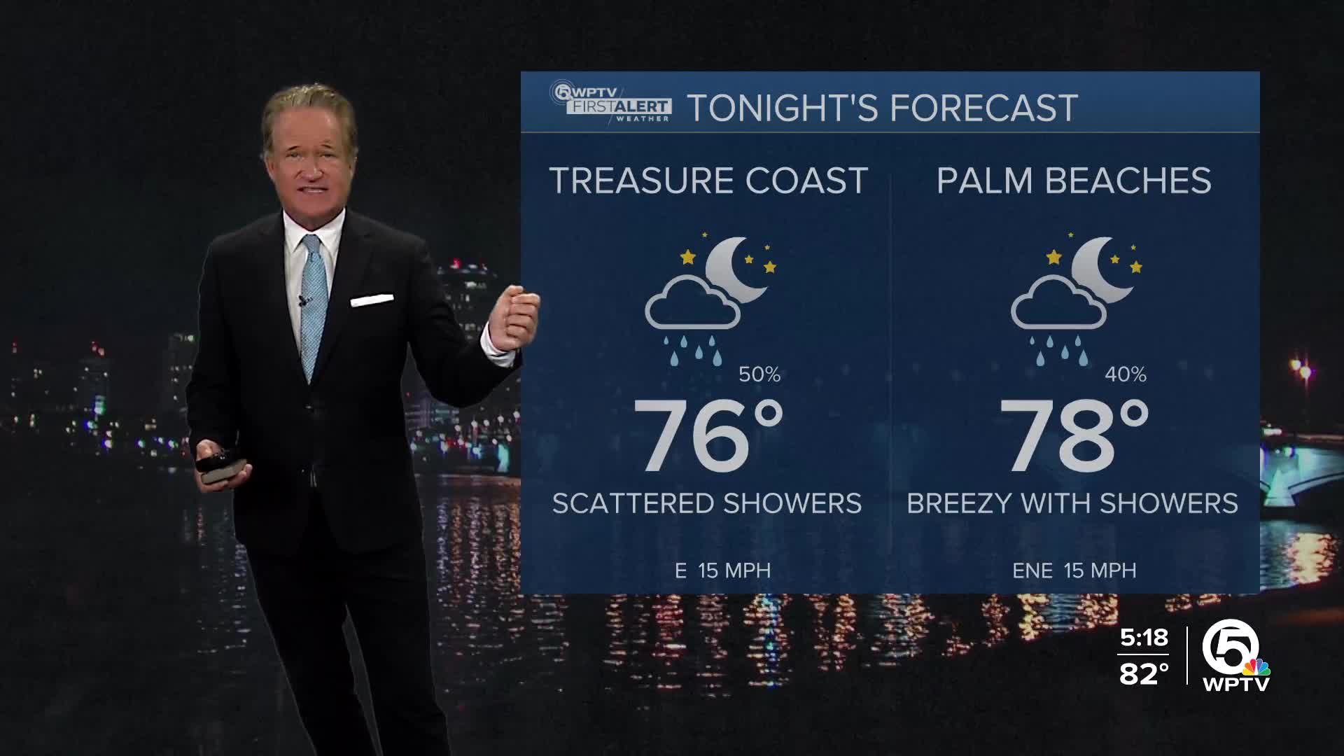 WEST PALM BEACH, Fla. — We will dial the wind and rain chances back a bit on Wednesday. Highs will be in the upper 80s with more sun around and less rain.