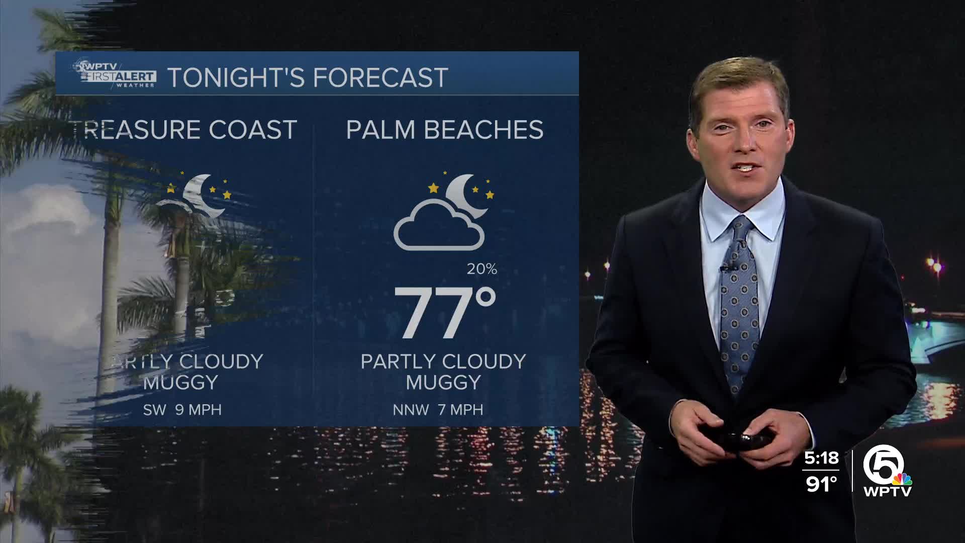 The waters could be a little choppy at times on the Treasure Coast Tuesday (3 to 5 feet), smoother off the coast of Palm Beach county and areas south (1 to 2 feet). Light northerly winds.
