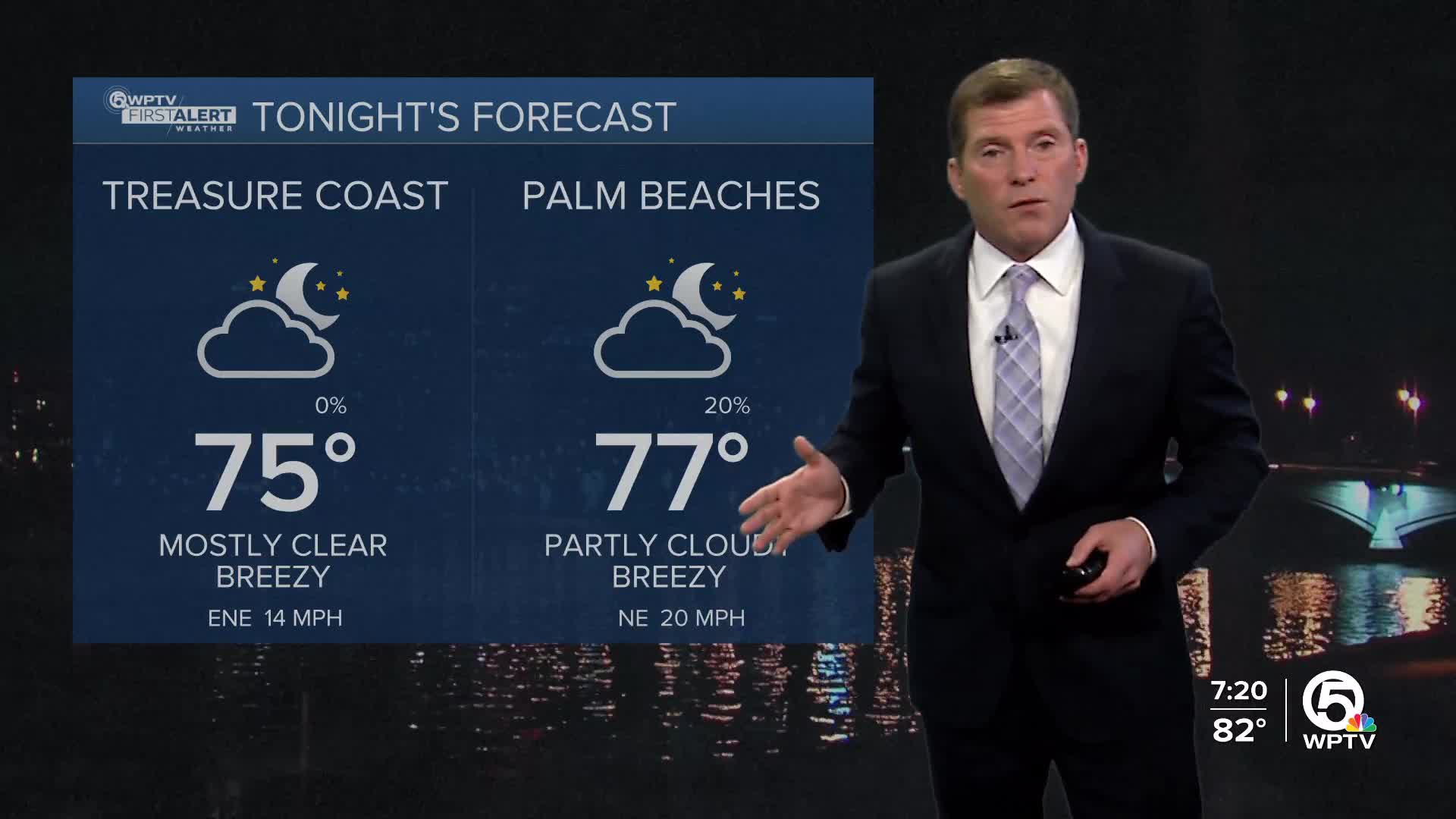 Today, a weak boundary is slowly traveling south across South Florida, establishing a high-pressure system that is set to keep those winds between 15 to 20 knots, with occasional gusts hitting up to 25 knots. Temperatures will be warm, with highs in the mid to upper 80s during the day and lows dropping to the mid-60s to mid-70s at night.