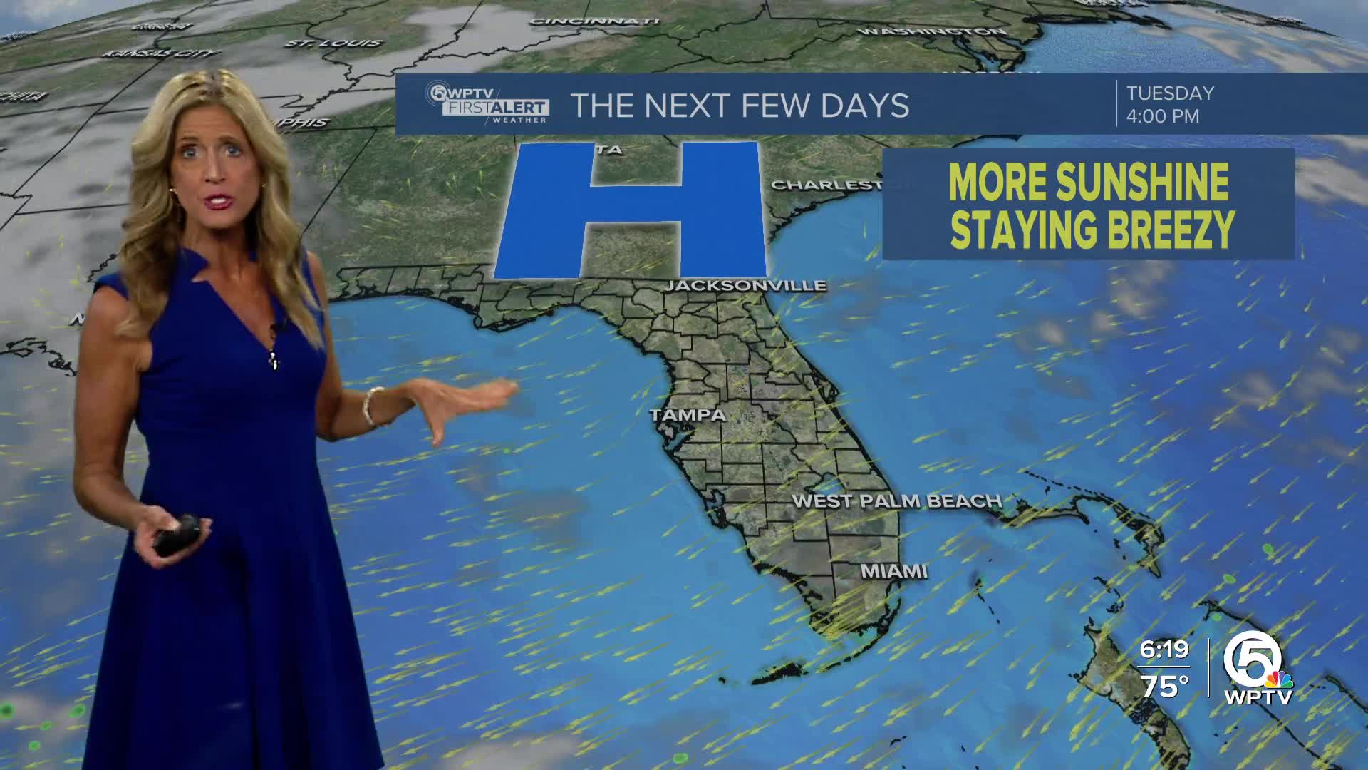 WEST PALM BEACH, Fla. — A cold front pushing through South Florida will usher in windy and cooler conditions for the workweek.