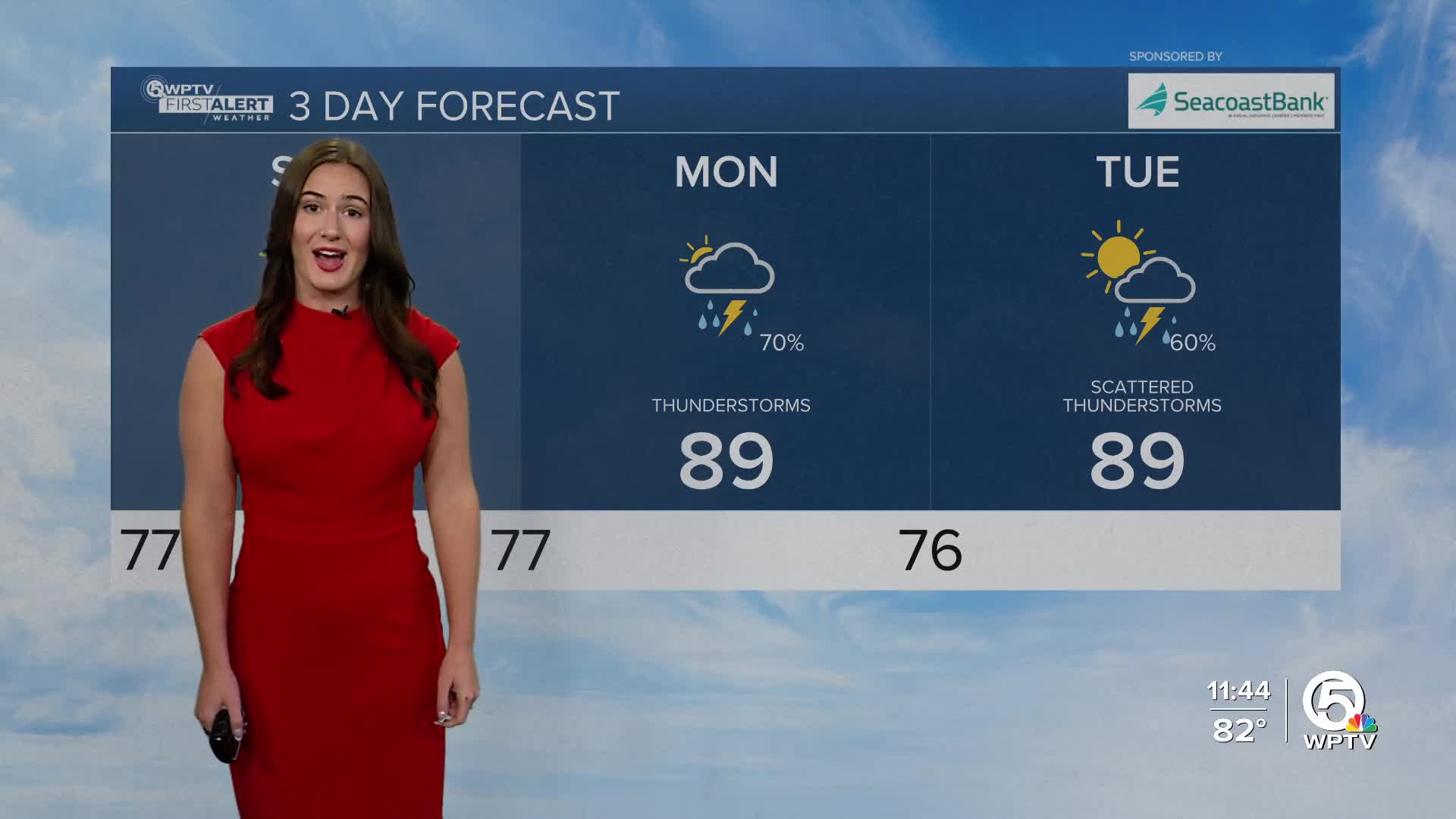 On Sunday, some sunshine is expected in the morning. Temperatures will rise into the upper 80s by noon. Storms will fire up again along the sea breezes, with the highest coverage expected in Palm Beach County by the afternoon and evening. A few slow-moving storms could still drop enough rain to cause localized flooding.