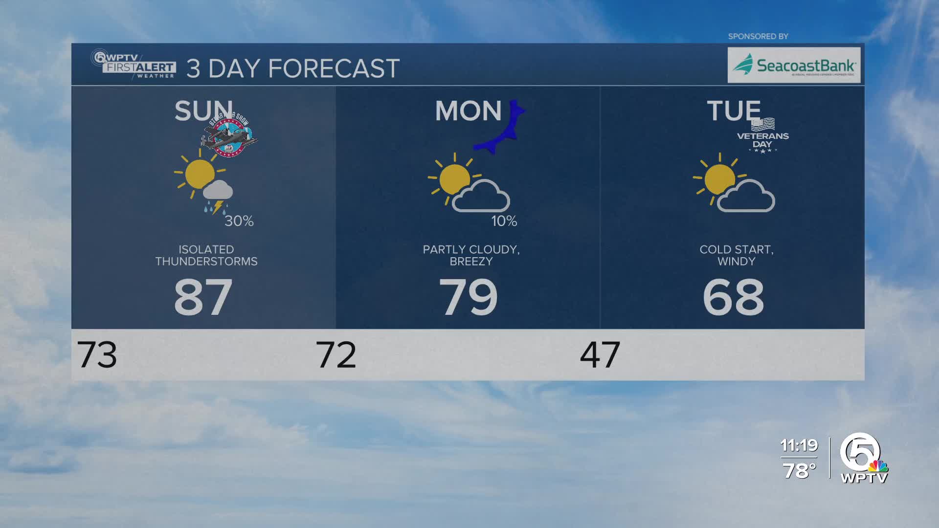 WEST PALM BEACH, Fla. — It’s a warm and humid fall weekend across South Florida, but big changes are on the way.