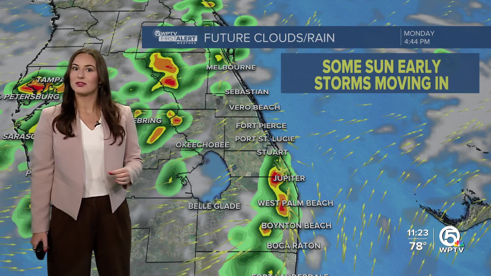 WEST PALM BEACH, Fla. — Now that the rain has cleared up for the night, it will be mostly cloudy with lows in the mid 70s.