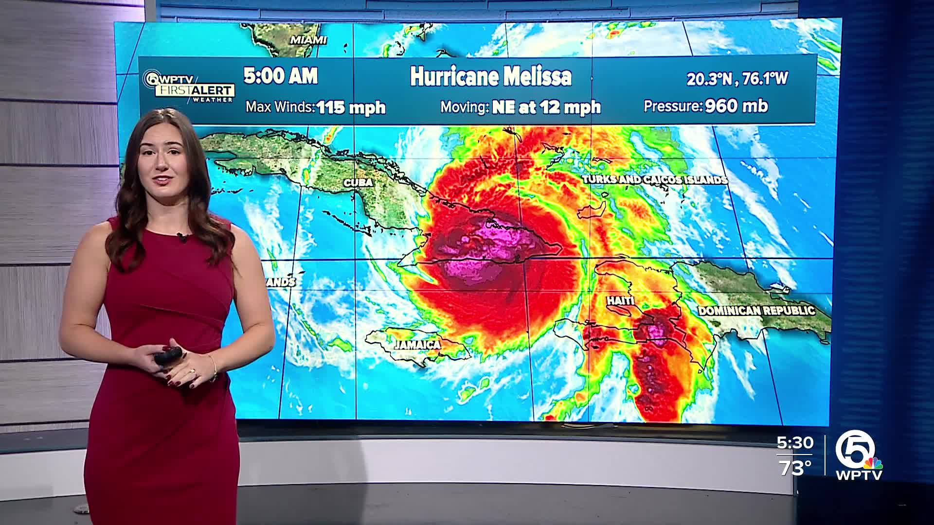 Melissa continues to cross eastern Cuba early Wednesday, where it has weakened to a cat. 2 storm. Hurricane-force winds and heavy rains and are causing widespread flooding and an elevated risk of landslides.