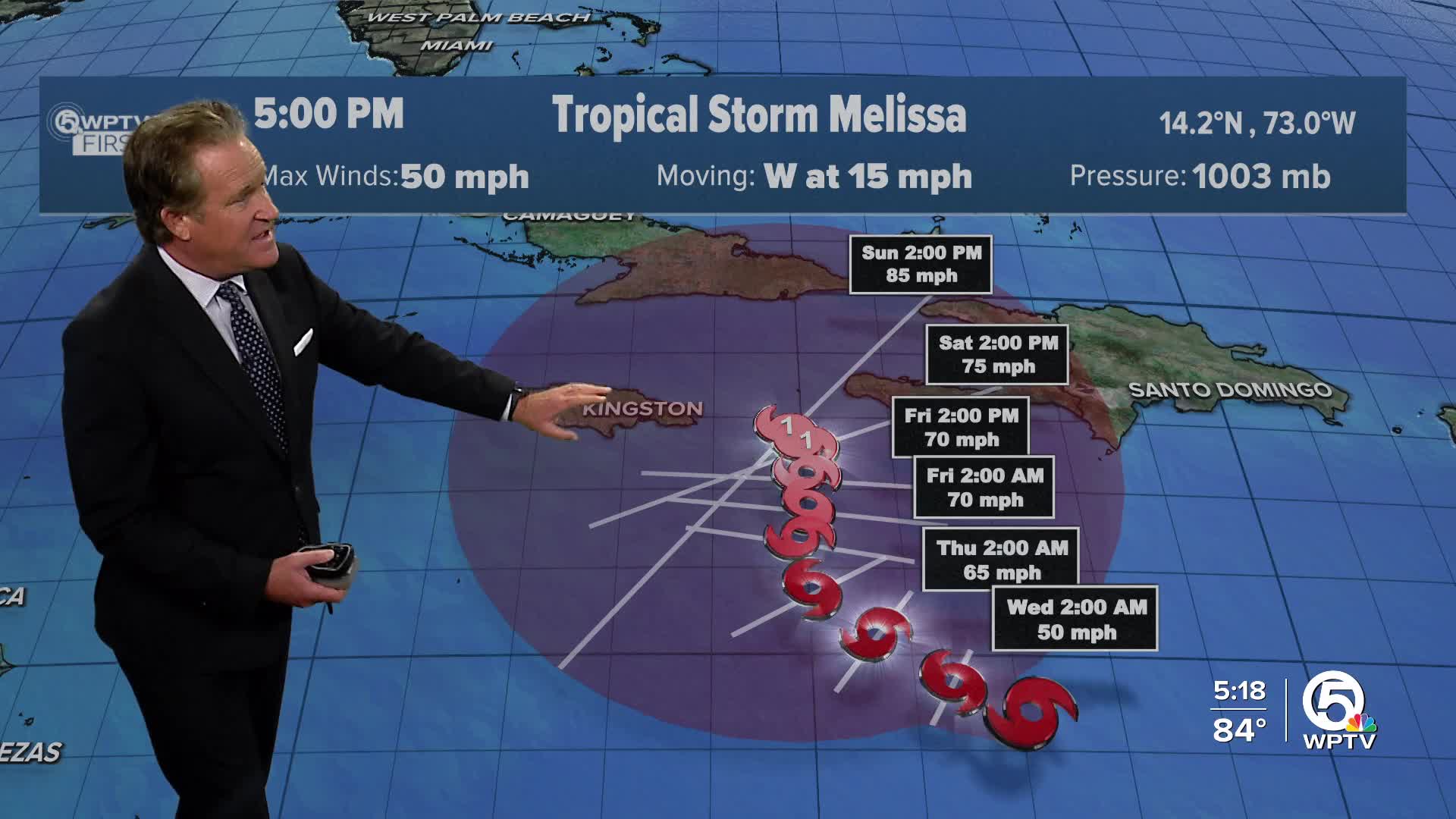 WATCH BELOW: Tropical Storm Melissa forecast to become Cat.1 hurricane