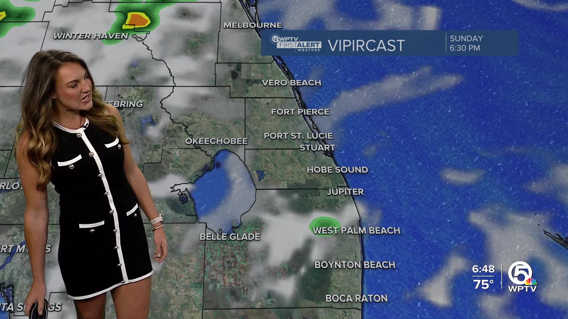 WEST PALM BEACH, Fla. — A mild start to the workweek Monday with morning temps in the mid 70s near the coast and just slightly cooler inland. We'll see a few showers Monday as southeast breezes keep us in the warm sector ahead of an approaching front.