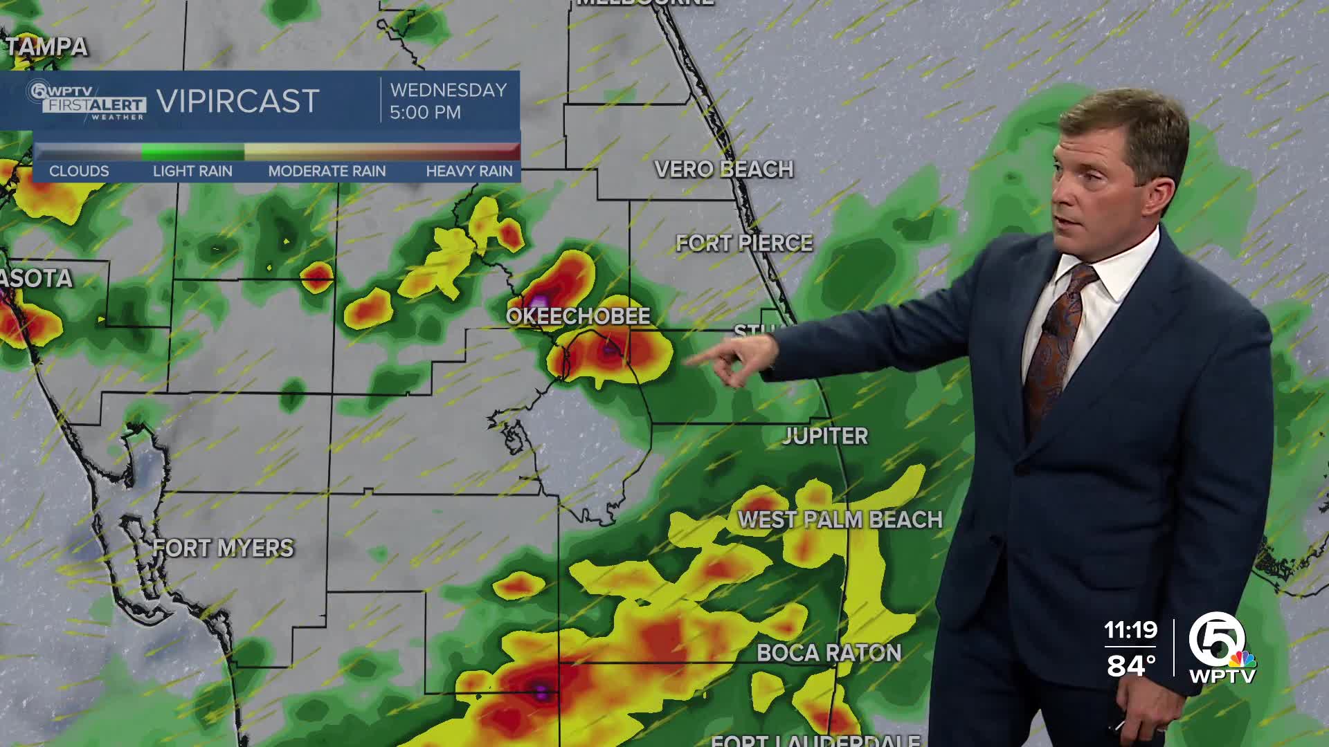WEST PALM BEACH, Fla. — Rain chances will increase starting Wednesday, with scattered showers and storms possible in the afternoon and evening.