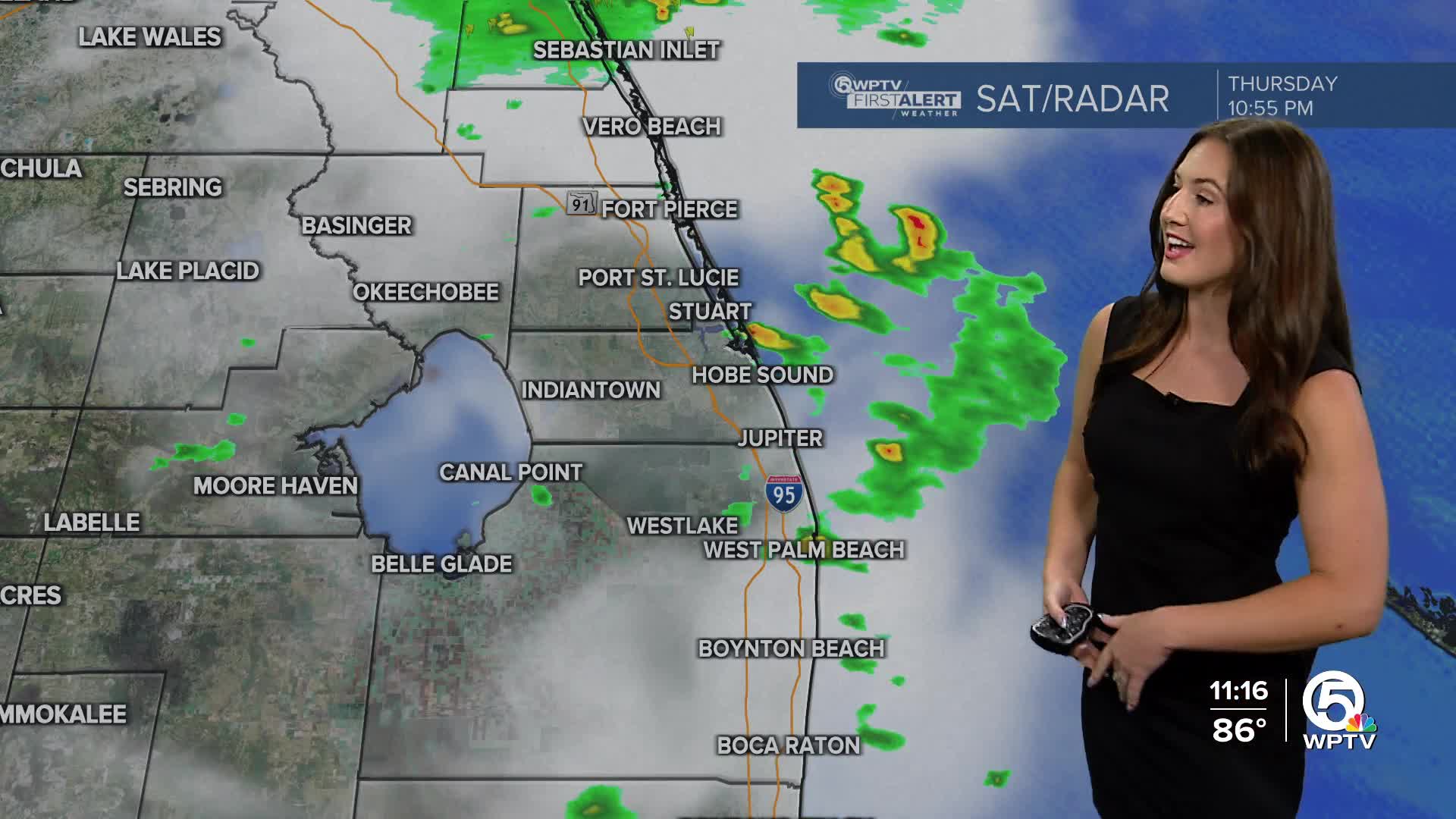 WEST PALM BEACH, Fla. — A few showers and thunderstorms are possible overnight. It will remain warm and humid with temperatures in the mid-70s.